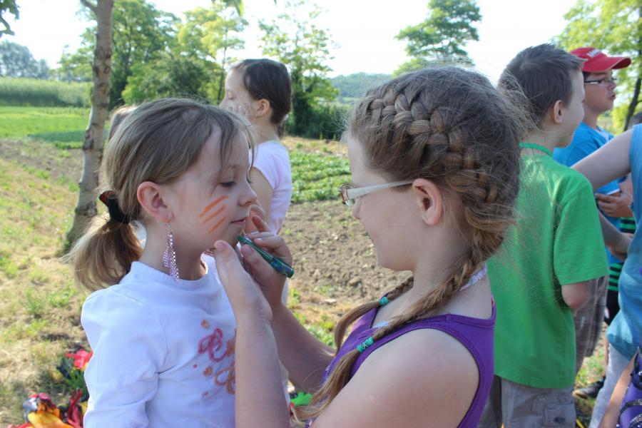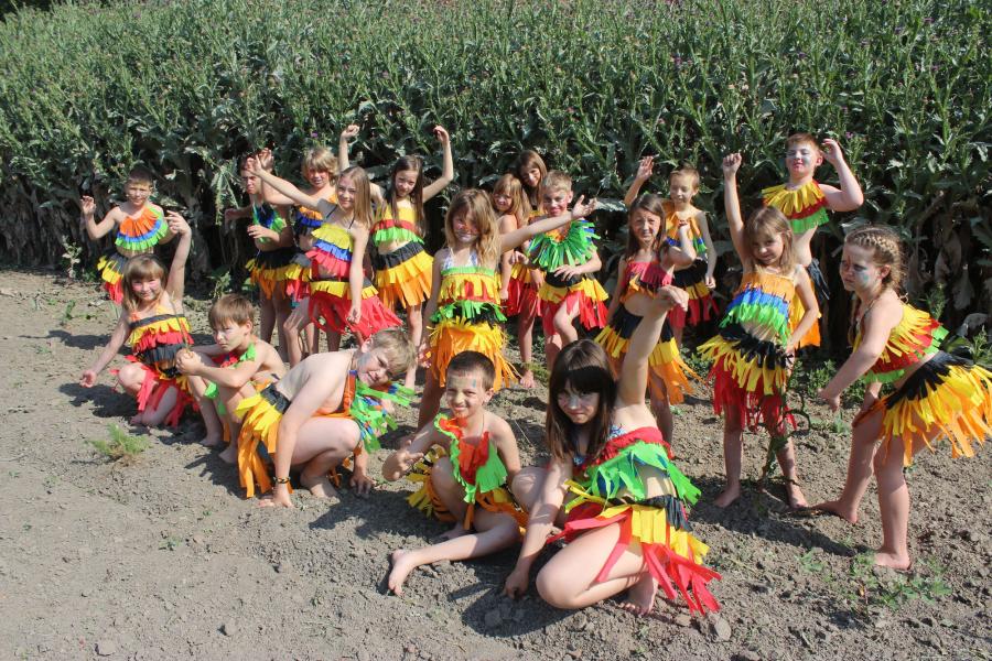Pak už jen zbývalo vydat se do „pralesa“, pomalovat barevně obličeje a zkusit si tanec zatančit. Jak se jim to povedlo, posuďte sami.