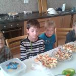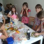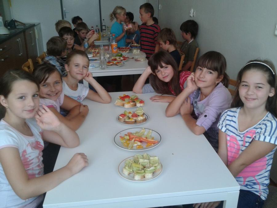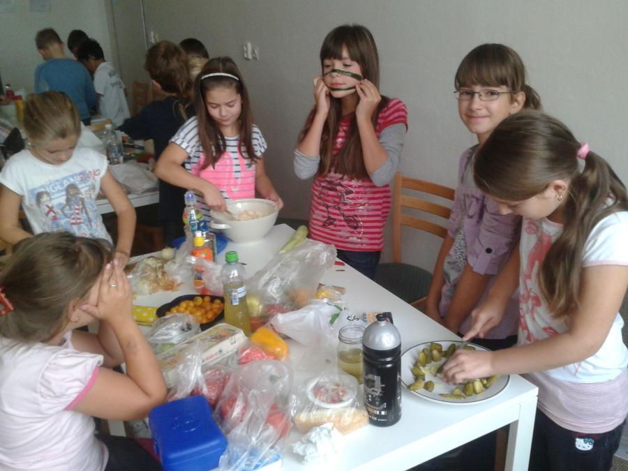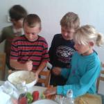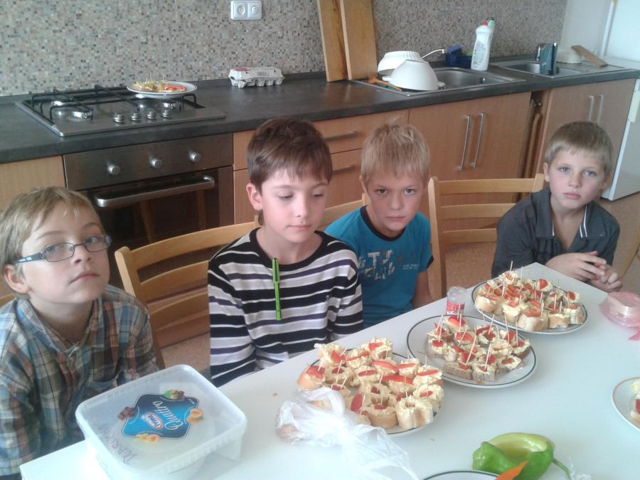Začátkem října jsme v pracovních činnostech dělali ve školní kuchyňce vaječnou pomazánku. Potřebovali jsme: 5 vajíček, 1 máslo, tavený sýr, hořčici a cibuli. Při krájení cibule nás pálili oči. Každá skupinka si připravila talíře hezky nazdobených chlebíčků. Dali jsme ochutnat i panu řediteli a paní zástupkyni. Ve třídě o svačinové přestávce jsme zbytek chlebíčků snědli. Byly moc dobré. Povedly se nám. Těšíme se na další vaření v pracovních činnostech.