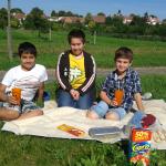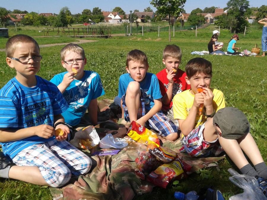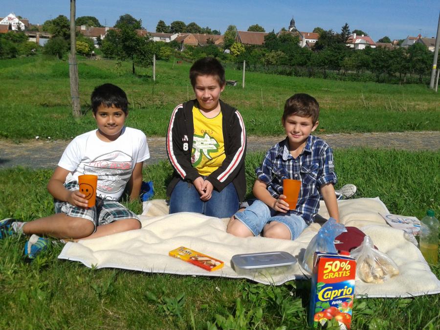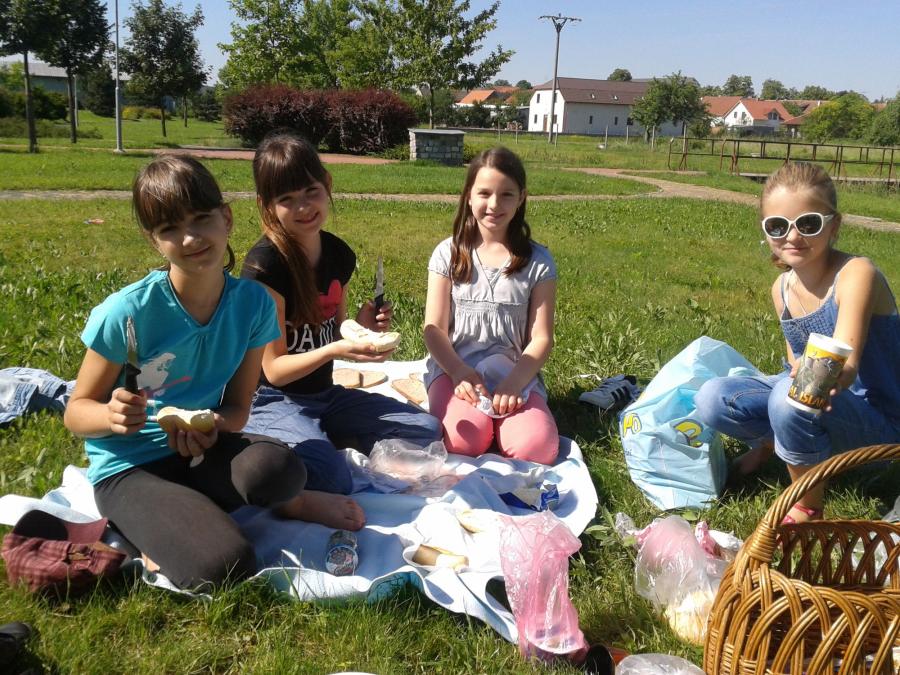 V hodině anglického jazyka jsme jako jednu z opakovacích lekcí měli hodinu nazvanou We´re having a picnic. Hned nás napadlo, že bychom si mohli piknik v přírodě zrealizovat. Nejprve jsme museli počkat na pěkné počasí, potom si děti ve skupinkách naplánovaly a anglicky pojmenovaly, jaké dobroty k jídlu i pití přinesou. Samozřejmě nechyběly deky, piknikové koše a vyrazili jsme do parku k nádraží, kde jsme ve stínu, na dekách a čerstvém vzduchu ten den posvačili. Tato hodina angličtiny se všem moc líbila!