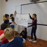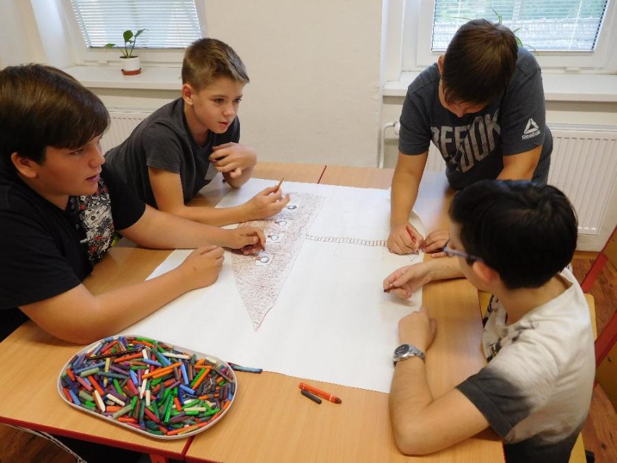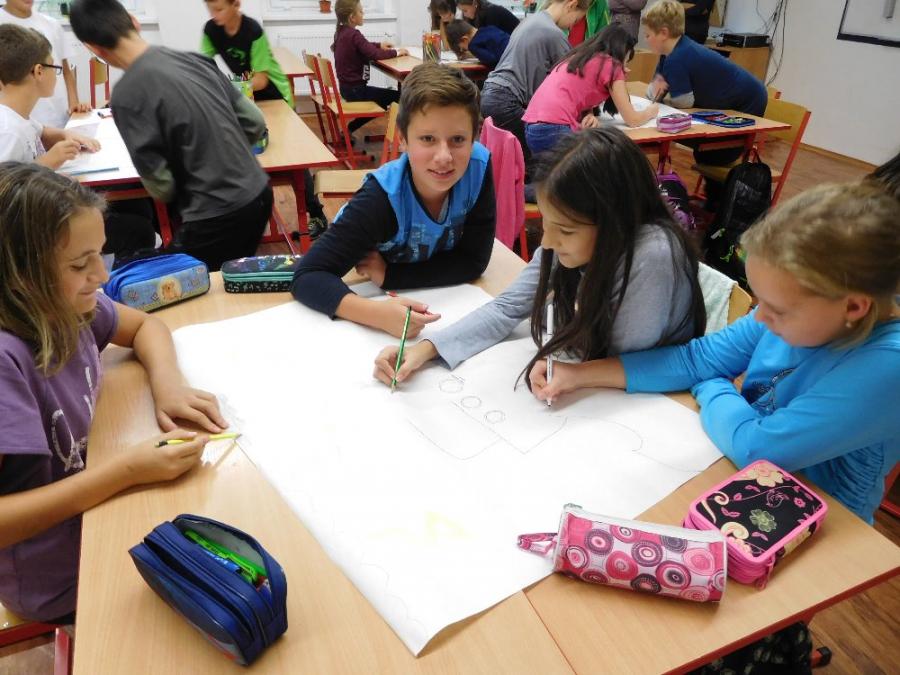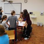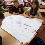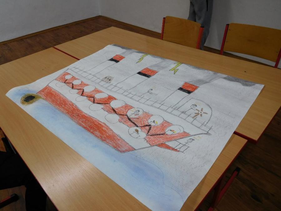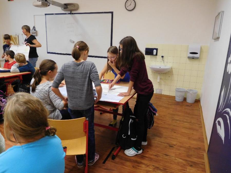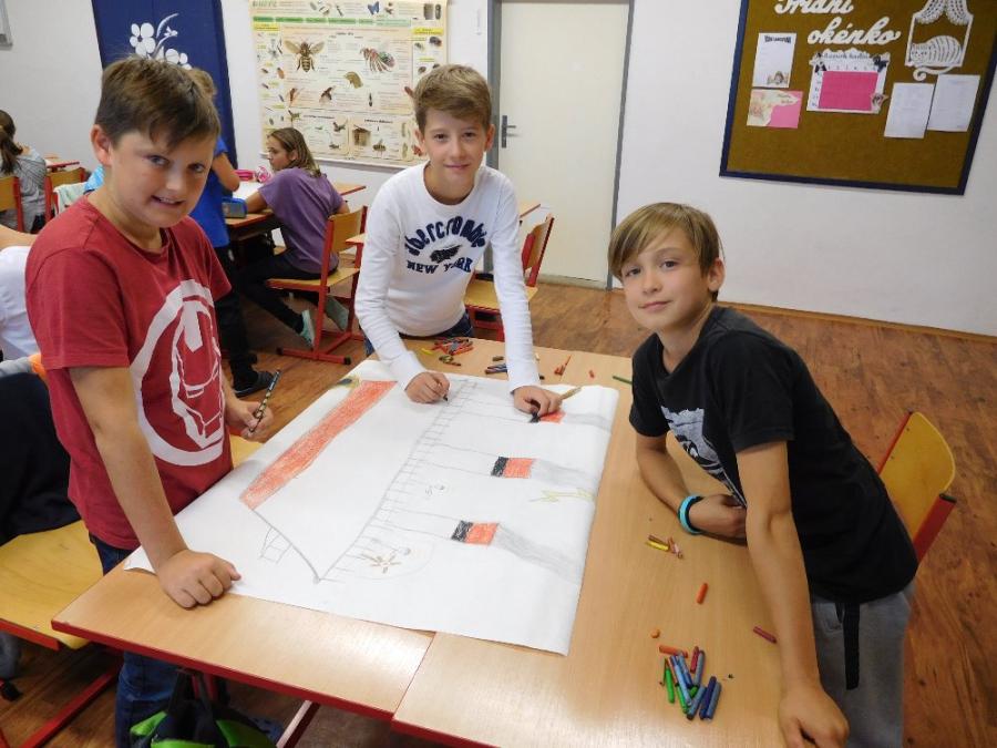 Z důvodu nepřízně počasí všechny aktivity probíhaly ve škole ve třídě a v malé tělocvičně. V první části si žáci zahráli několik seznamovacích her, druhá část byla ve znamení práce ve skupinách. Žáci dostali za úkol namalovat loď a na ni namalovat sami sebe v pozici kapitán, kormidelník, plavčík nebo kuchař. Na tento úkol měli vymezenou jednu vyučovací hodinu. Po uplynutí této doby každá skupina musela svoji loď představit a popsat. Zajímavé bylo to, že u některých skupin si žáci role určili sami, jinde demokraticky losovali. V jednom případě byl kapitánem ten, kdo prohrál v losování.