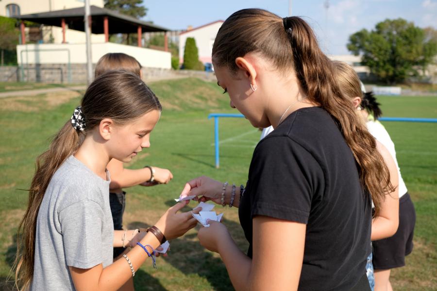 První aktivita byla o poznávání druhých a jejich oslovení. Druhá aktivita pomáhala druhým zjišťovat něco o nás, a nakonec jsme všechny papírky zmačkali do několika malých koulí a koulovali jsme se. Holky vyhrály v koulovačce nad kluky a následně se všichni vrátili do Ekocentra na pokoje. Měli jsme chvíli pauzu, ale pak už jsme šli konečně na oběd. K obědu jsme dostali špagety, které nám moc chutnaly. Až jsme si odpočinuli, šli jsme sbírat písmenka a z nich jsme tvořili slova. Náš tým samozřejmě prohrál. Následovala aktivita a mělo se hrát třída A proti třídě B na to, kdo toho druhého trefí dřív, než on trefil vás. Každý obdržel tři papírové koule. Následoval polední klid, ve kterém proběhla mezi holkama polštářová bitva. Následujících pár minut jsme se bavili, dokud pro nás nedošla paní učitelka a neřekla, že se půjde na svačinu. Tam jsme dostali chleba se šunkou a jablko. Mohli jsme být ještě chvíli na pokojích, ale pak jsme šli na procházku po Velkých Pavlovicích. Zašli jsme do nedalekého parku, kde bylo hřiště i malý rybník. Osvěžili jsme se a následoval návrat na Ekocentrum. Chvíli jsme pobyli na pokojích. Následovala volná aktivita. Někteří hráli venku fotbal, badminton, samozřejmě nechyběly karty. Zanedlouho jsme se vydali na večeři. Bylo výborné rizoto. Na Ekocentru vařili skvěle. Následně byla aktivita, kde jsme se svěřovali ve trojicích druhým. Odpovídali jsme na předem určené otázky. Pak jsme se jen osprchovali a následovala stezka odvahy. Odehrávala se v areálu ekocentra. Všichni se pobavili. Pak už jsme jen šli na pokoj a ve 22:00 jsme měli večerku. S Justy jsem šla spát kolem 23:00. Probudila jsem se kolem sedmé a o hodinu později jsem s ostatními v kuchyňce čekala na snídani. Měli jsme vánočku s nutelou nebo jsme si mohli vzít máslo a marmeládu. Po snídani jsme měli aktivitu s cédéčky a pak jsme přenášeli vajíčka na destičce s otvorem na vajíčko. Potom jsme šli na svačinu, dostali jsme rohlík se sýrem a mrkví. Měli jsme chvíli na odpočinek a následovala závěrečná aktivita. Hledali jsme papírky. Následně jsme je přeložili a potom jsme seskládali větu. Pak už jsme se šli vystěhovat z pokojů.