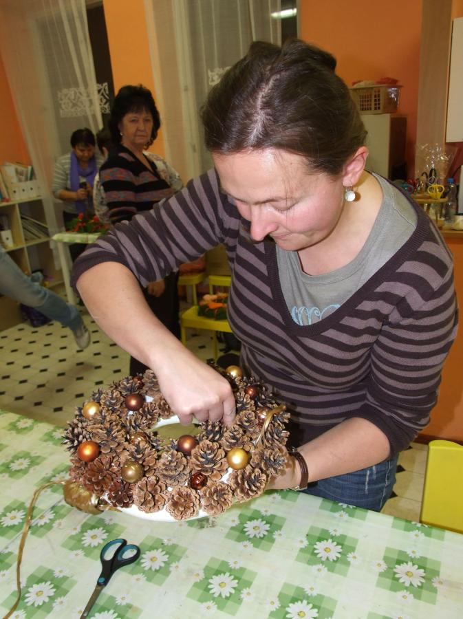 A navíc vlastnoručně vyrobený? Jedenáct účastníků páteční výtvarné dílny na „Domečku“, tedy na Středisku volného času při ZŠ, určitě ano a navíc, naprosto originálních a krásných. Děti, maminky i babičky se zde navečer sešly, aby si vyrobily snad tu nejtypičtější výzdobu pro tento předváčnoční čas. Některé zvolily možnost věnce na stůl, se čtyřmi svíčkami, někteří, včetně jednoho zručného hocha, věneček na ozdobení vstupních dveří domu či bytu.