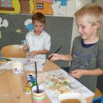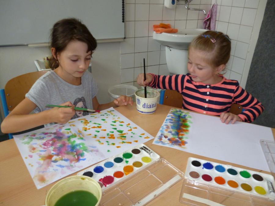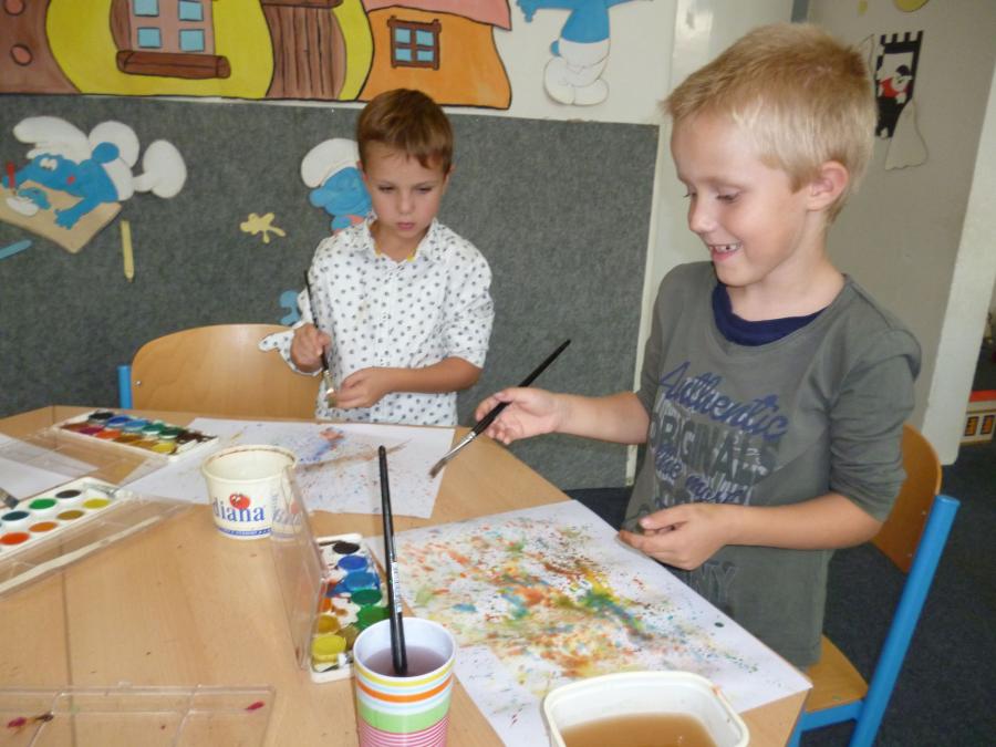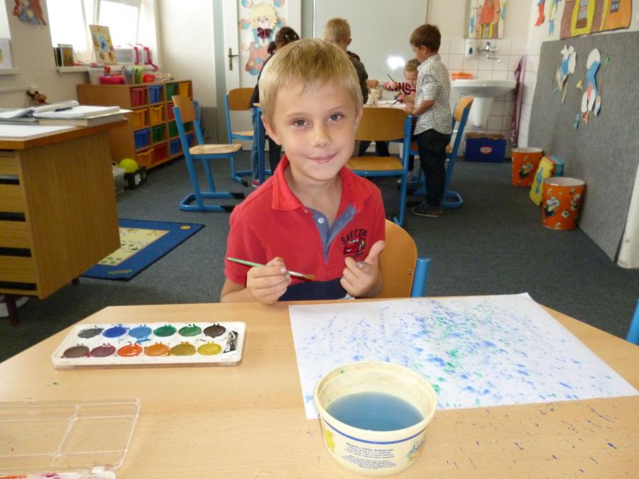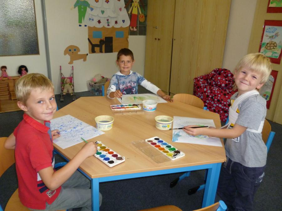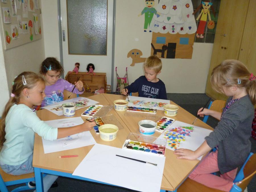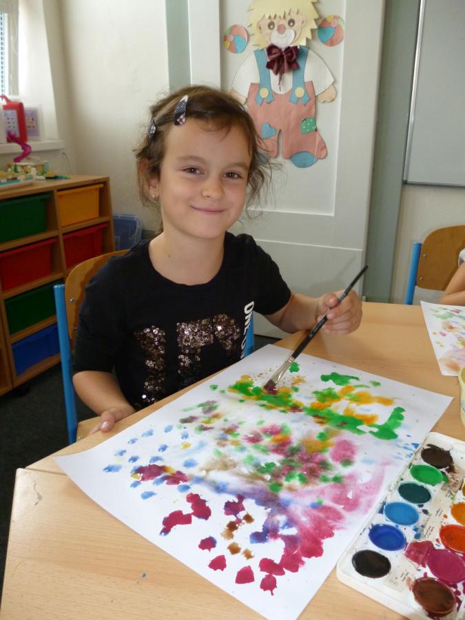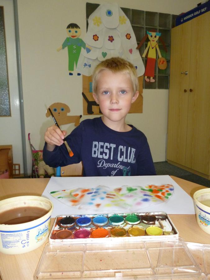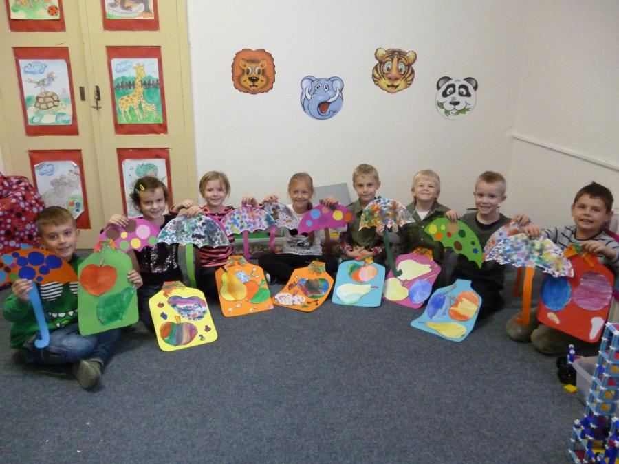 Chladné a deštivé počasí nás v anglické školní družince inspiruje k činnostem spojeným s motivy podzimu. Vyplňujeme pracovní listy s tématem „Ovoce a zelenina“, tvoříme pěkné duhové obrázky pomocí zapouštění vodových barev, podle šablon vyrábíme ovocné zavařeniny a během celého našeho tvořeníčka si osvojujeme a opakujeme anglická slovíčka.
