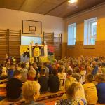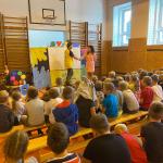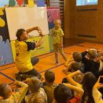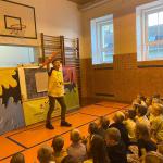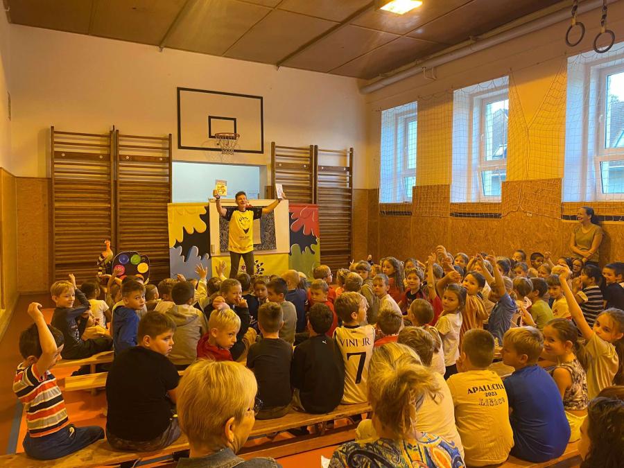 V pondělí 23.9.2024 proběhla beseda s názvem „Ilustrace a vystoupení pro děti“ pro žáky 1. -3. ročníku. Adolf Dudek dětem vysvětlil velmi osobitým způsobem pojmy ilustrace, ilustrátor, jak dlouho trvá přibližně ilustrace jedné knihy. I děti, které si myslely, že neumí kreslit, přesvědčil, že to zvládnou za pomocí čtyř základních geometrických tvarů.