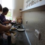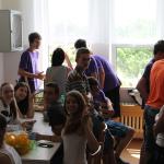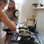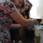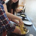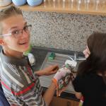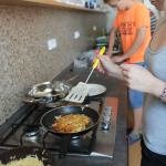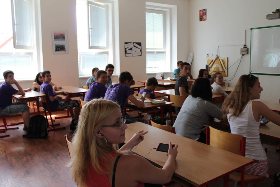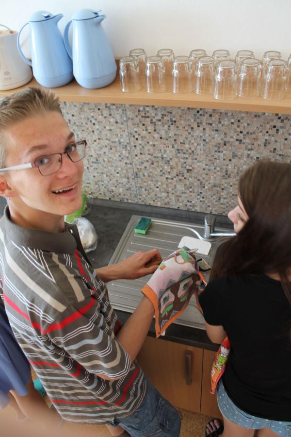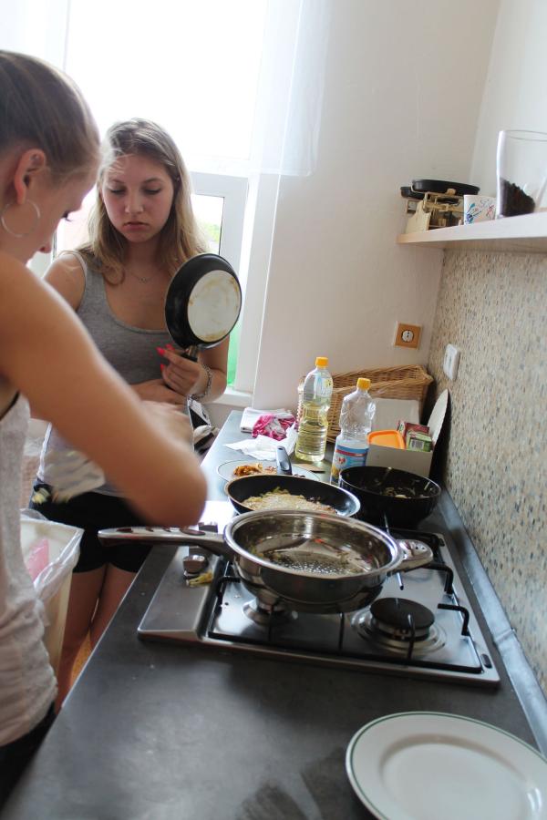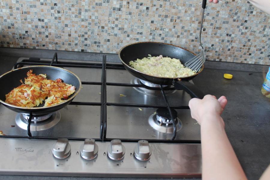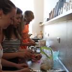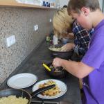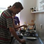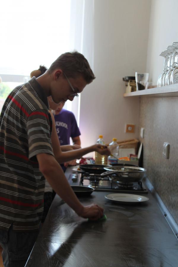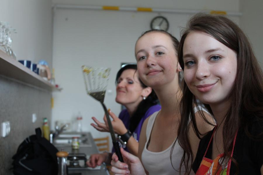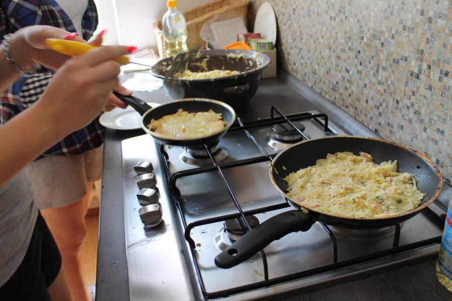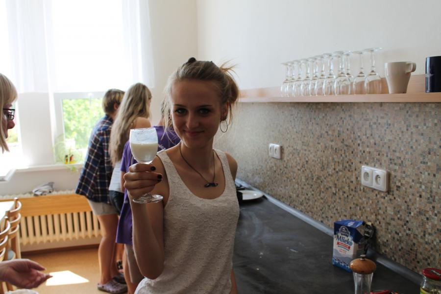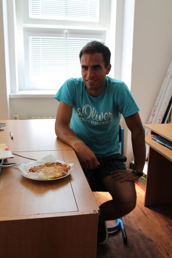 Ve středu 3.6. byl výjimečný den, protože jsme se rozhodli udělat výborné bramborové placky (bramboráky). Ale nápad vznikl vlastně už v úterý, protože jsme zrovna četli jeden článek z učebnice německého jazyka. A jen tak náhodou to byl článek o tom, jak se dělají bramboráky. Byl celkem podrobně popsaný, tak stačilo jen tento článek přeložit a měli jsme skvělý recept před sebou. Sice nás v článku zarazila doposud neznámá slovesa, ale s jejich poznáním se celý text najednou překládal lépe. Ve středu to celé vypuklo. Předposlední hodinu jsme šli do školní kuchyňky. Každý přinesl ingredience podle toho, jak nám bramboráky chutnají. Někdo je měl se šunkou, někdo se salámem a někdo samotné. Každou věc, co jsme dělali a brali do ruky, jsme pojmenovávali německy. Paní učitelka Fišerová nás u toho opravovala a u toho opravování se velice smála. Nastrouhali jsme hromadu brambor a postupně přidávali rozmačkaný česnek, majoránku, a sůl. Tohle celé nám zabralo celou jednu hodinu. Potom už na nás čekalo jen smažení, které šlo cítit snad na celé škole. Aby nikdo neřekl, že jsme lakomí, tak jsme připravili těsto i pro učitele a druhou skupinu naší třídy. Bramboráky jsme jedli rovnou z pánvičky. Byla to suprová hodina a rádi bychom si to zopakovali.