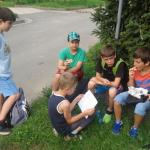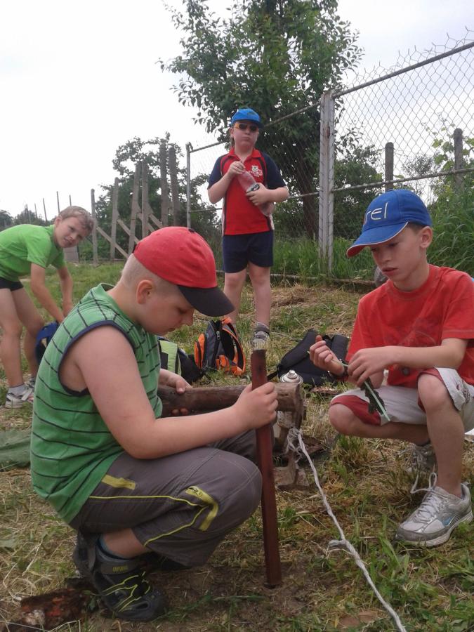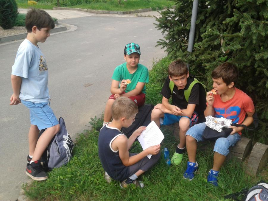 Dne 21. června jsme měli branný den. Naše třída šla nejdelší trasu. Po cestě jsme plnili různé úkoly např. hod na divočáka, poznávání stop zvířat, luštili jsme přírodovědné a vlastivědné křížovky a šifru, která nás poslala hledat poklad. Báli jsme se, že zmokneme, protože bylo zamračeno a foukal vítr. Když jsme přišli do cíle, museli jsme postavit domečky z různých přírodnin. Na cestě zpět jsme se zastavili na zmrzlině a potom jsme mohli být chvilku na hřišti, které bylo naproti cukrárny. Bylo to moc bezva!