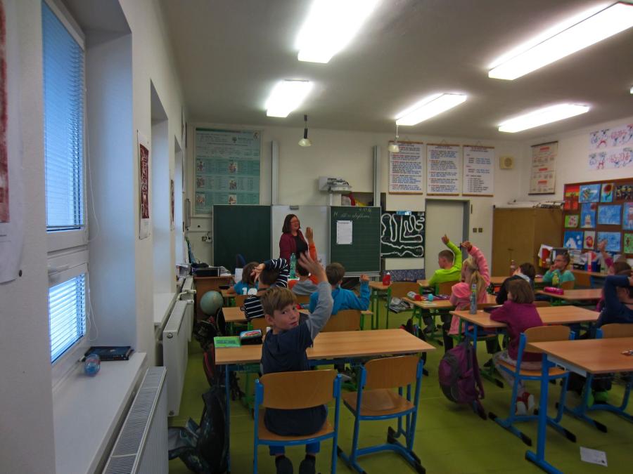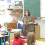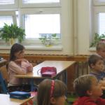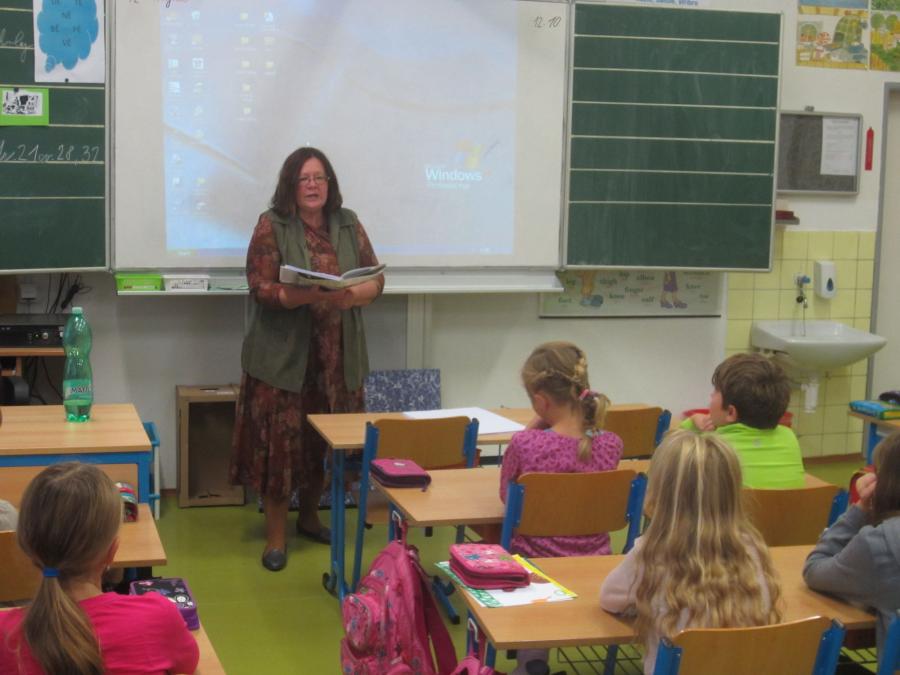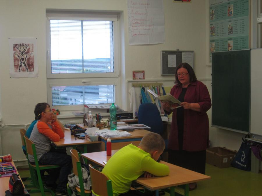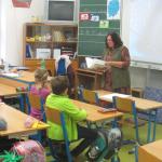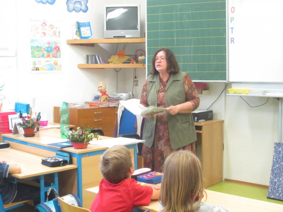 Vzájemnou spolupráci vidíme jako skutečně smysluplnou, protože čtení si vyslechlo více než 80 dětí. Naproti tomu knihovnice se snaží na oplátku dětem přiblížit špičková díla současné české literární tvorby pro děti. Vybírá laskavé, optimistické příběhy s dobrým koncem, které mají děti jednak pobavit, jednak pohladit po dušičce. Pro „druháčky“ přišla letos v pátek 7. října číst z knížky Zuzany Šmerglové „Za chalupou špačci dupou“. Kouzelné vyprávění o rodině Šťastných, která si koupila venkovskou chalupu už předem napevno obydlenou malou šedou myší. V knížce poznávají děti život rodiny, život na venkově i jednotlivá roční období. Není pak vůbec divné, že v závěru knížky spolu slaví Vánoce tatínek Šťastný Rudolf, maminka Šťastná Jarmila, děti Šťastný Emil a Šťastná Amálka a s nimi Šťastná myš.
