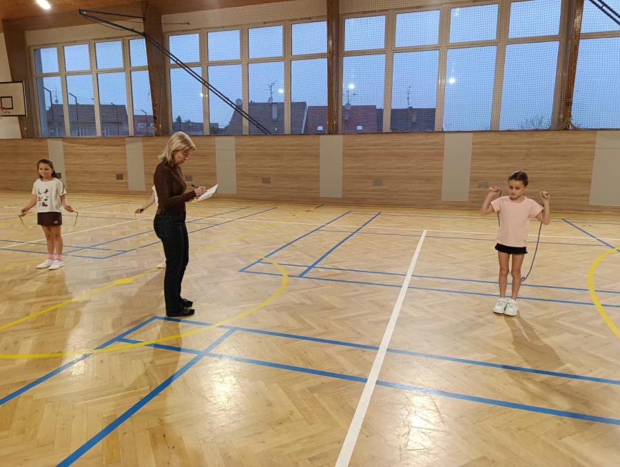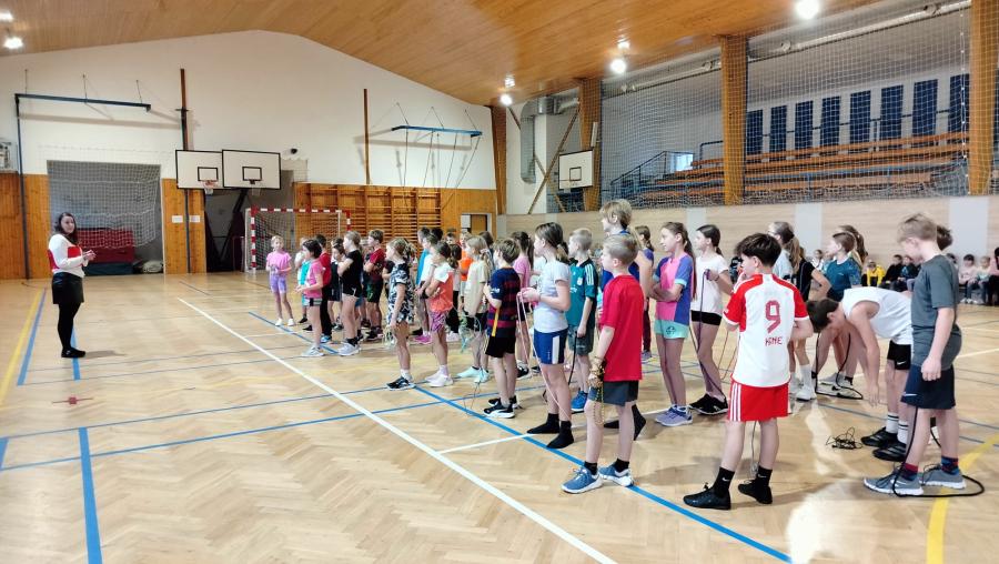 Ve velké tělocvičně se opět po roce konala oblíbená soutěž v přeskoku přes švihadlo – „Čertovké skákání“. Žáci byli rozděleni do dvou kategorií podle ročníků a úkolem bylo během 30 sekund předvést co největší počet přeskoků libovolným způsobem. Atmosféra byla nadšená a soutěžní duch nechyběl nikomu.