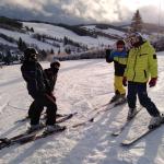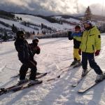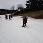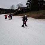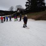 Čenkovice nás přivítaly skoro jarním počasím. Sníh byl pouze v pásech na sjezdovkách. Naše první seznamování s ním začalo ihned odpoledne, po rozdělení do družstev. První a druhé družstvo se vydalo na vlek, třetí pod sjezdovku nacvičit první pozice na lyžích. Ve výcviku se mělo pokračovat druhý den, ale počasí nám vše zhatilo. Od ráno pršelo, a tak jsme dopoledne strávili v hotelu turnajem ve stolním tenise a dalšími společenskými hrami. Odpoledne proběhla beseda s členem Horské služby Čenkovice.