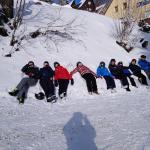 Týden uběhl jako voda a nás v pátek čekalo balení a svážení věcí dolů na parkoviště, kde na nás čekal autobus. Ještě uplácat kouli ze sněhu, hodit ji po kamarádovi a už se vyráželo směr domů. Tak zase za rok a díky, snížku, bylo to super.