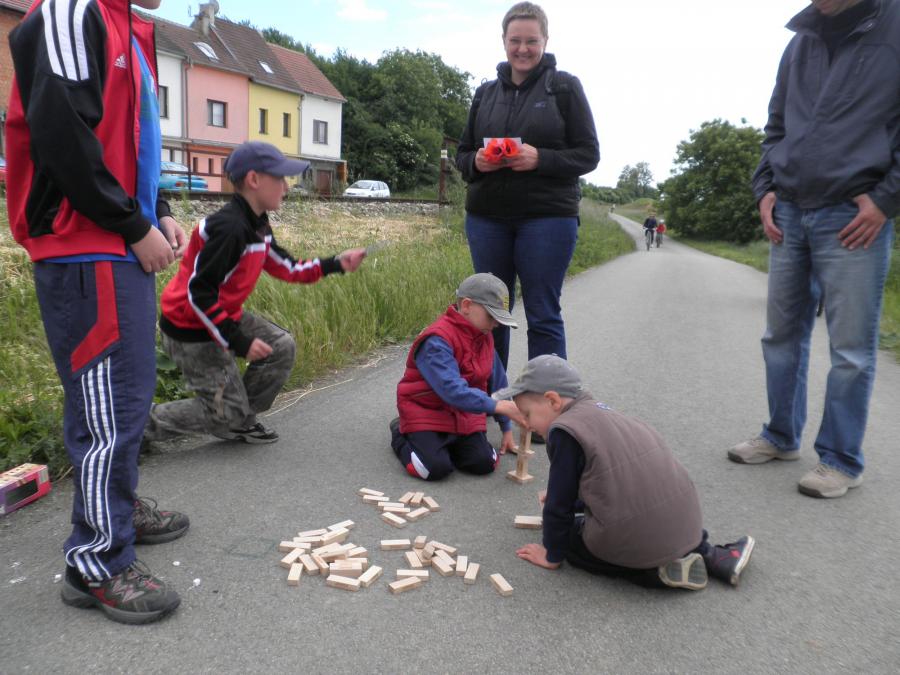 želězničním přejezdem byl úkol ve skládání kostek JENGY a posledním