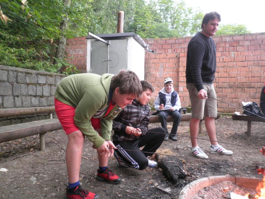 myslivnu, kde je čekalo střílení ze vzduchovky a opékání špekáčků, které