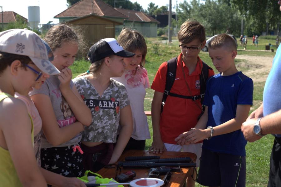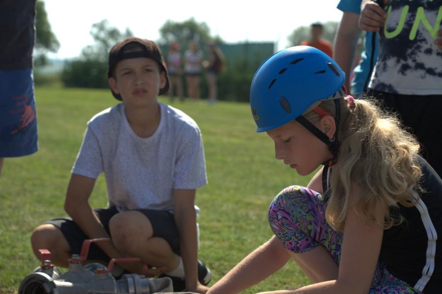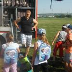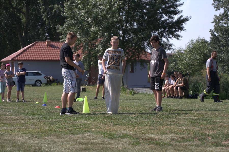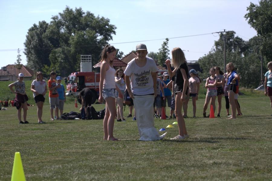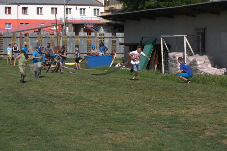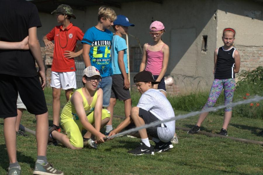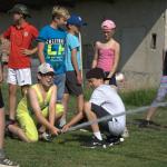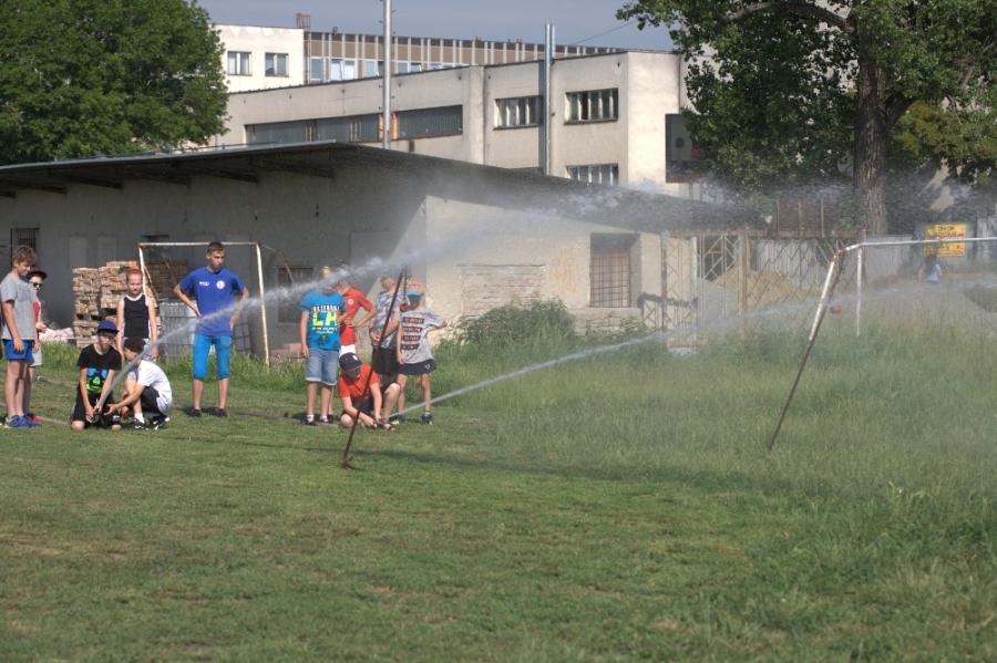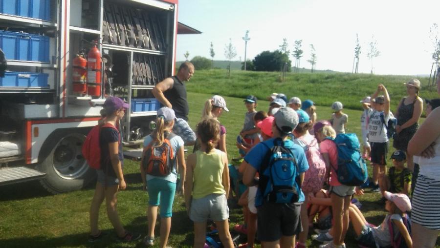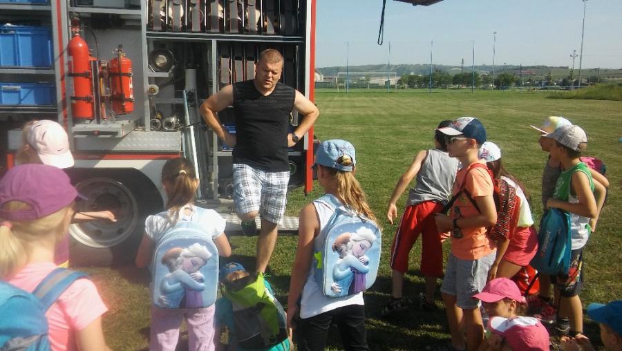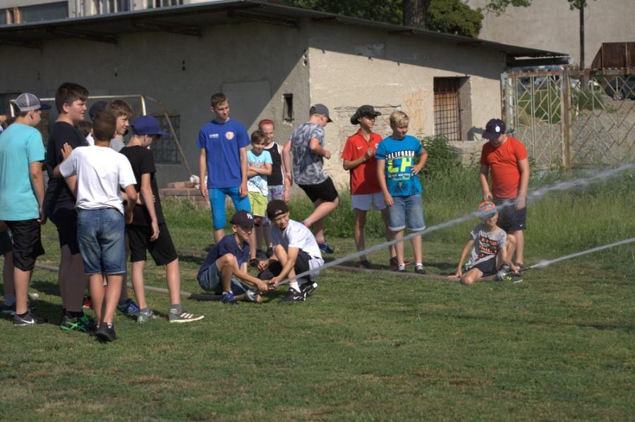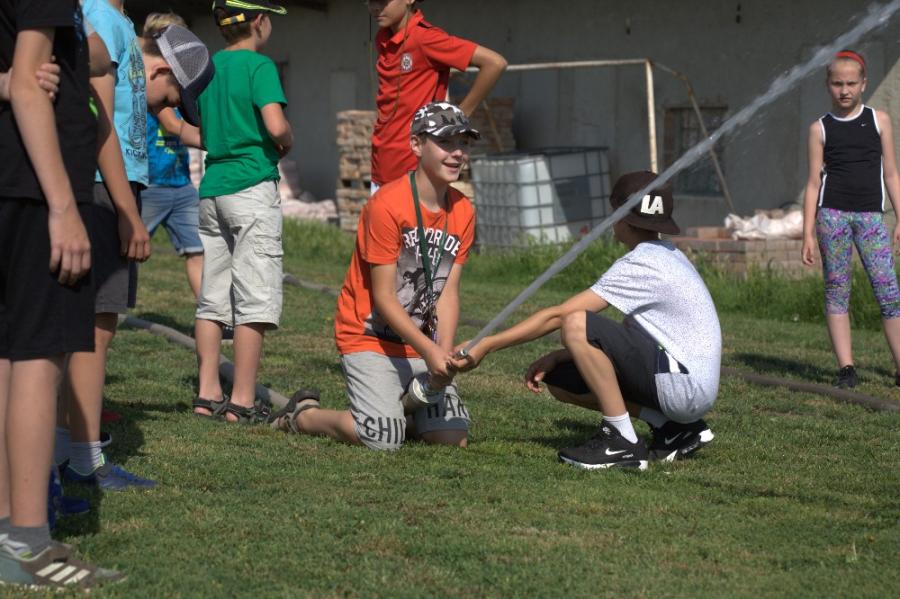 I mladí hasiči z řad žáků ZŠ předvedli své umění a ukázali svým spolužákům útok na terč. Vzápětí si každý, kdo chtěl, mohl tuto činnost sám vyzkoušet. Za velmi horkého počasí, které ten den panovalo, bylo velmi příjemné ochladit se stříkající vodou.