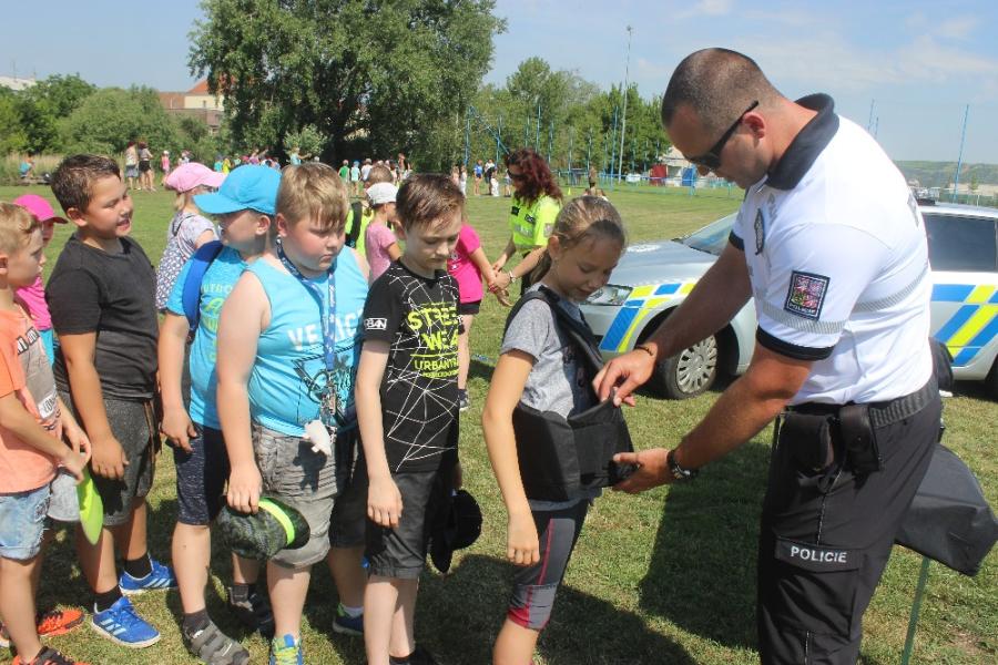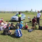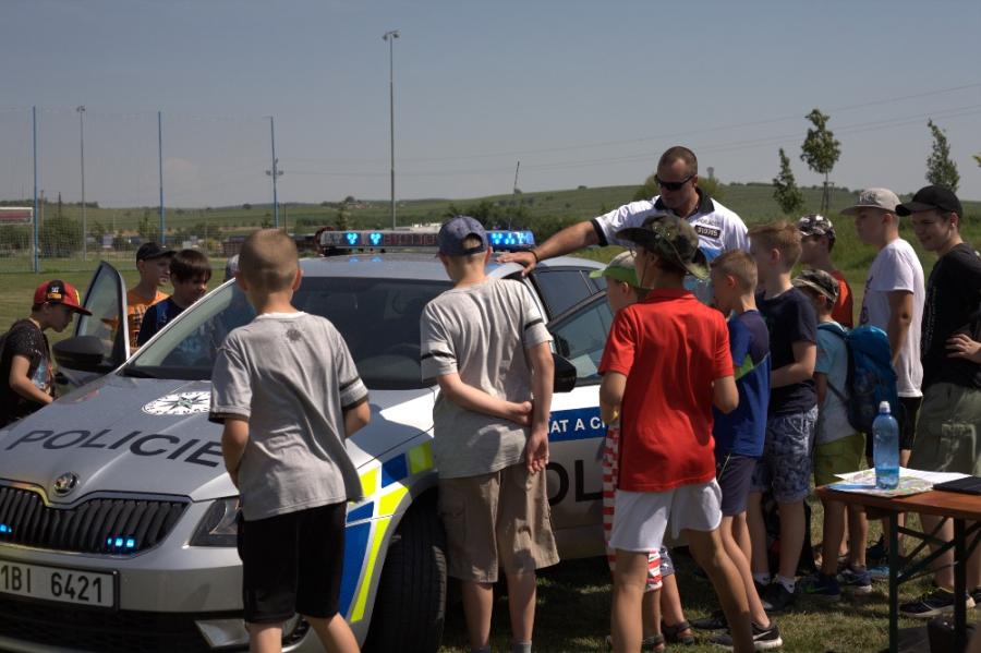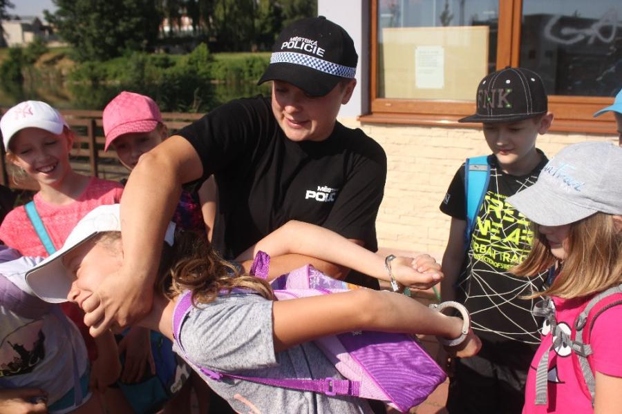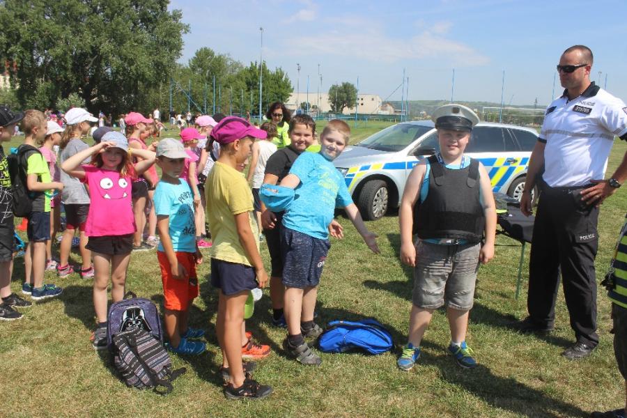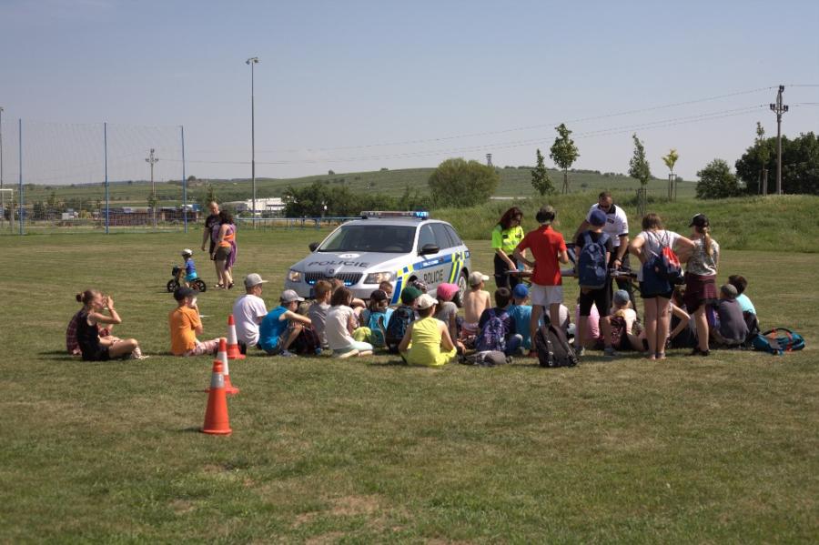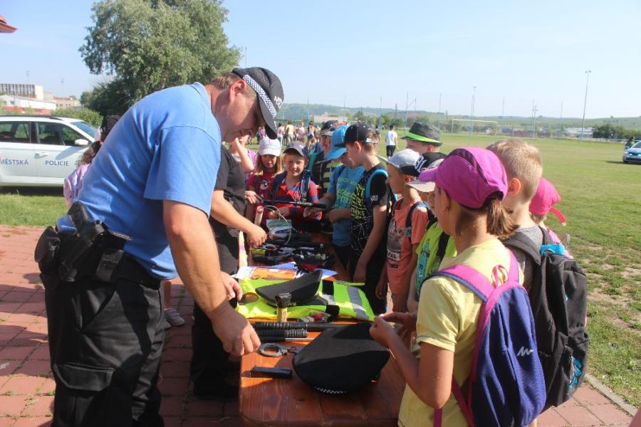 Následně si všechny děti mohly prohlédnout hasičské i policejní vozy, samy si vyzkoušet postupy dopravní policie při řízení dopravy, kontrole řidiče i dopravní nehodě, oživovaly člověka v bezvědomí, prováděly masáž srdce a také se seznámily s náročnou prací městských strážníků.