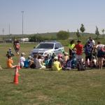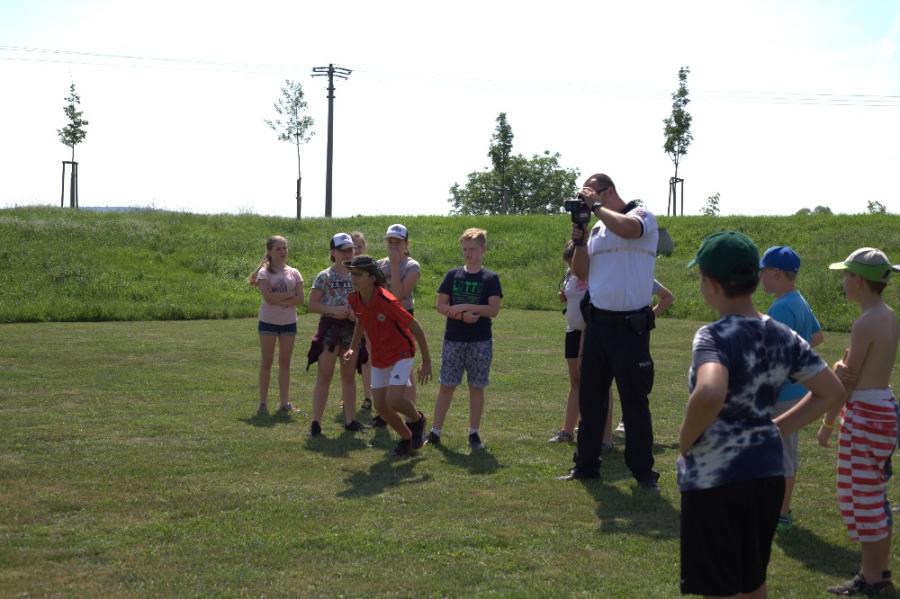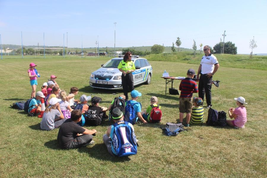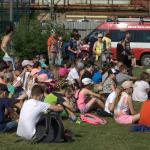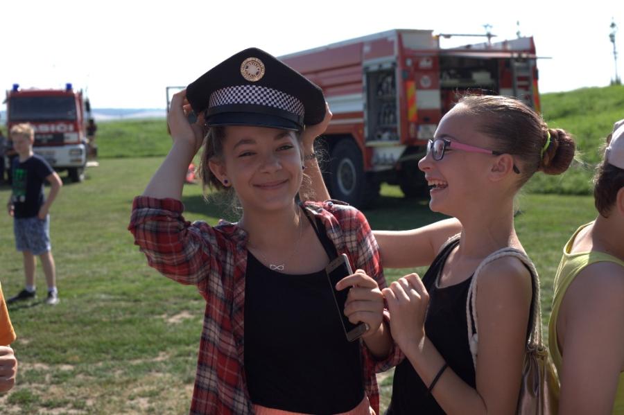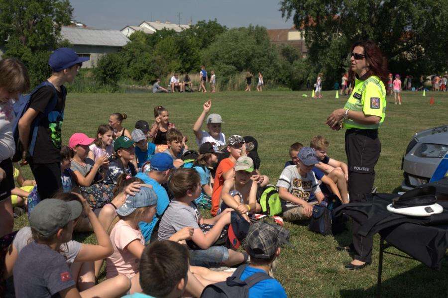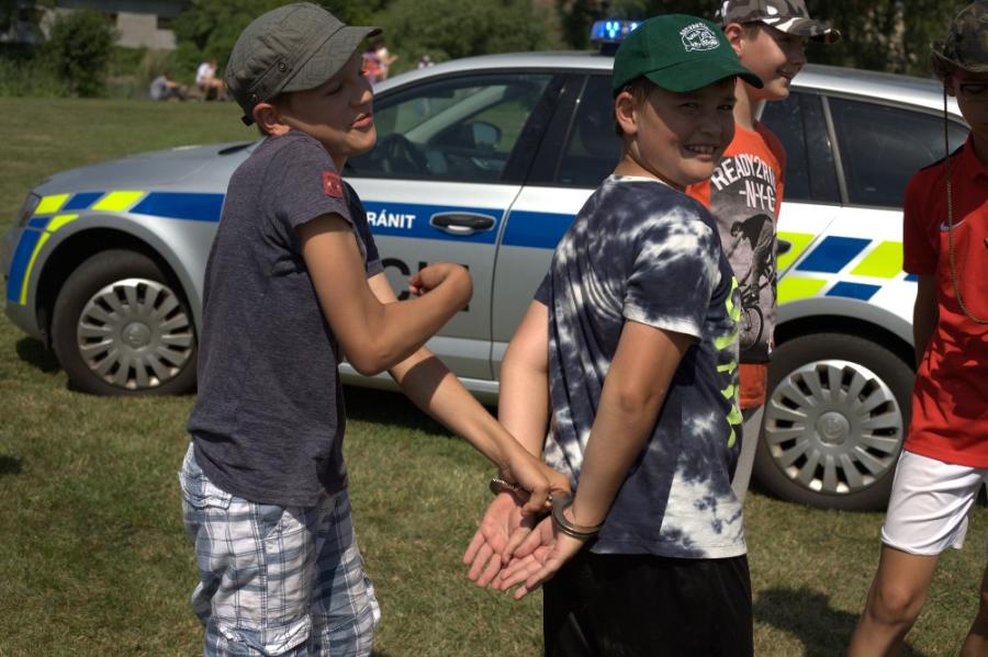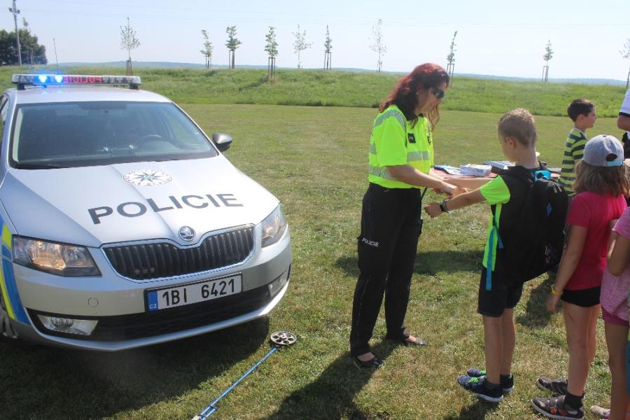 Následně si všechny děti mohly prohlédnout hasičské i policejní vozy, samy si vyzkoušet postupy dopravní policie při řízení dopravy, kontrole řidiče i dopravní nehodě, oživovaly člověka v bezvědomí, prováděly masáž srdce a také se seznámily s náročnou prací městských strážníků.