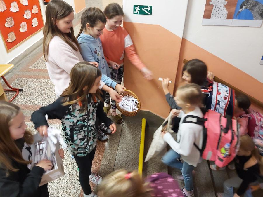 Festival Den poezie se koná napříč celou republikou na počest narození Karla Hynka Máchy od 7. do 20. listopadu. Proto jsme se zapojili i my na 1. stupni, a to 16. listopadu projektovým dnem. Už ráno byl každý žák obdarován tzv. „motákem“ – básničkou smotanou do ruličky, která měla být poetickým potěšením pro celý den. Většinu z nich vlastnoručně napsali žáci třetích a čtvrtých tříd. S nadšením očekávali, komu zrovna ta jejich báseň udělá radost.