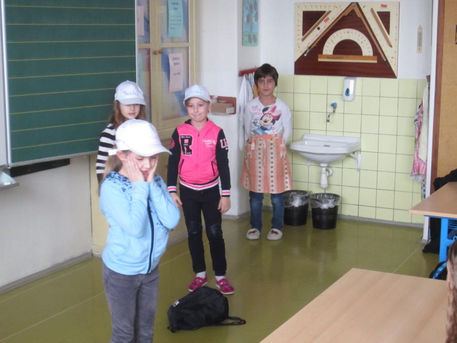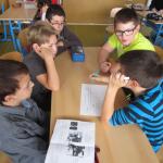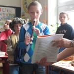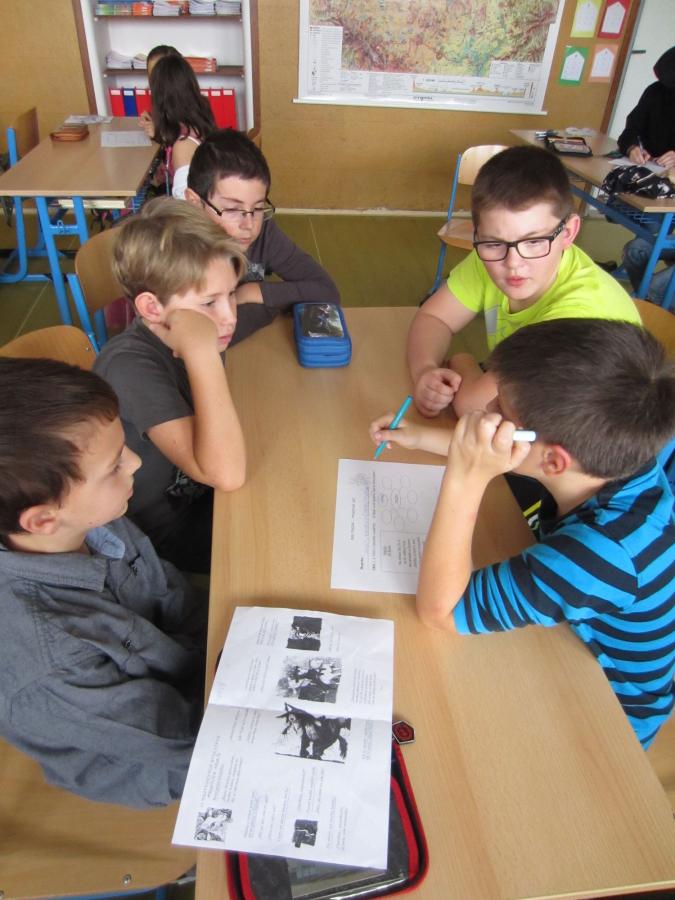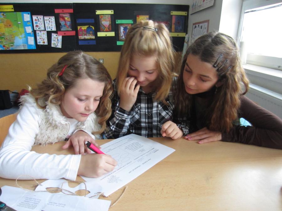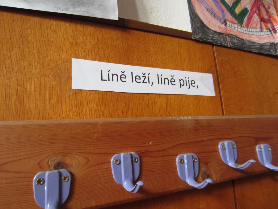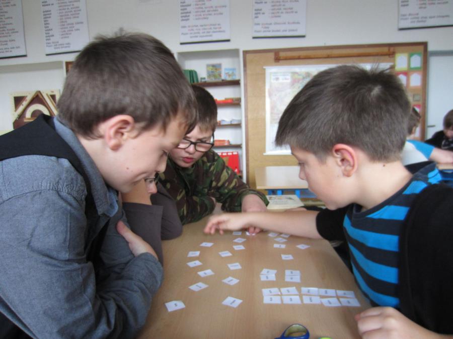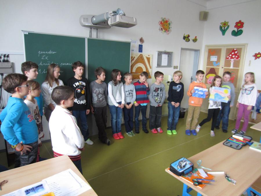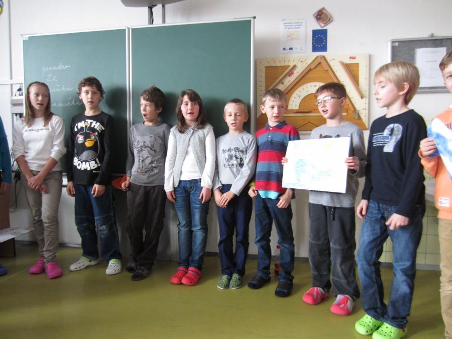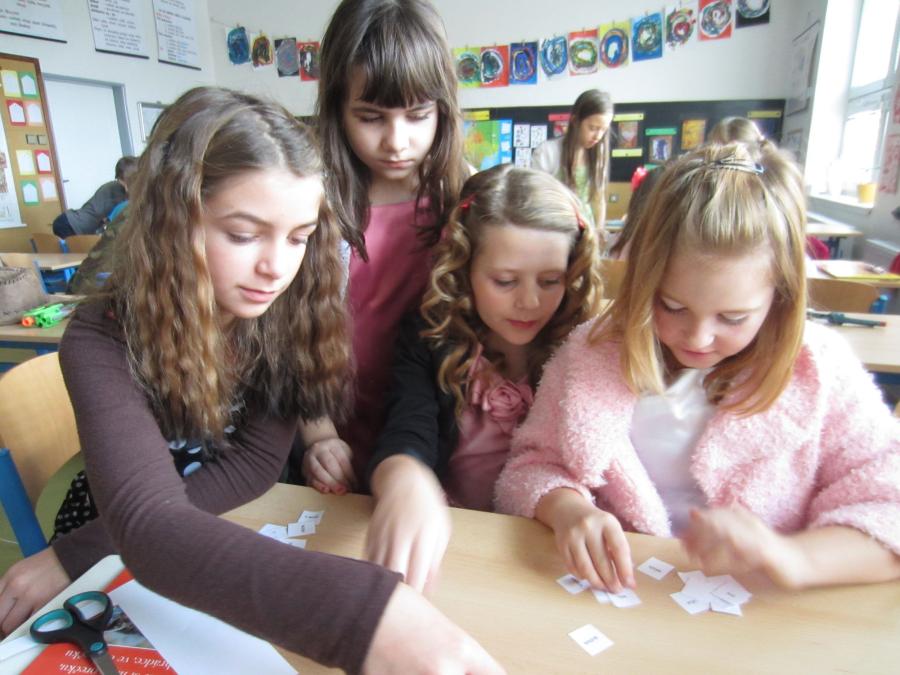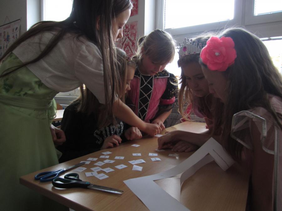 Poslední hodinu ve skupinkách plnili úkoly z pracovních listů. Doplňovali rýmy, přiřazovali ilustrace a hádali hádanky. Jeden z nejzajímavějších úkolů byl hledat na verše rozstříhanou báseň, ukrytou na různých místech budovy prvního stupně. Verše museli najít a potom i  ve správném pořadí poskládat v původní báseň.