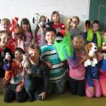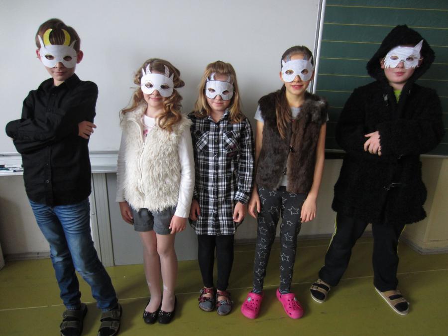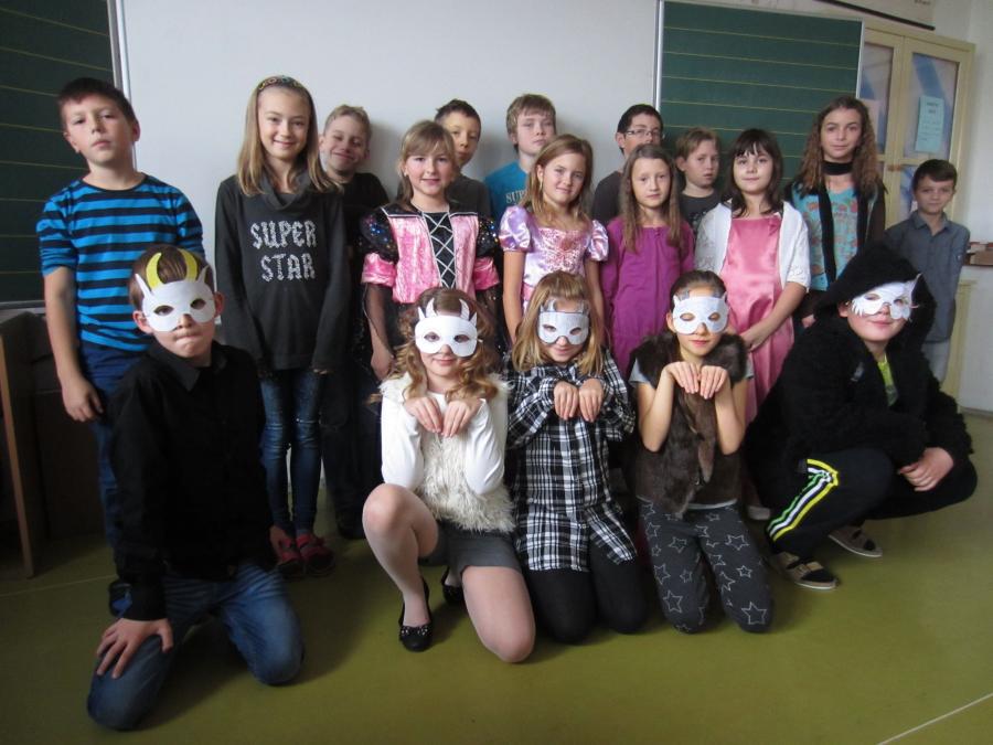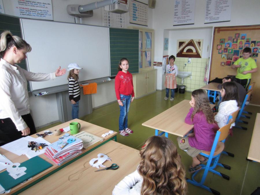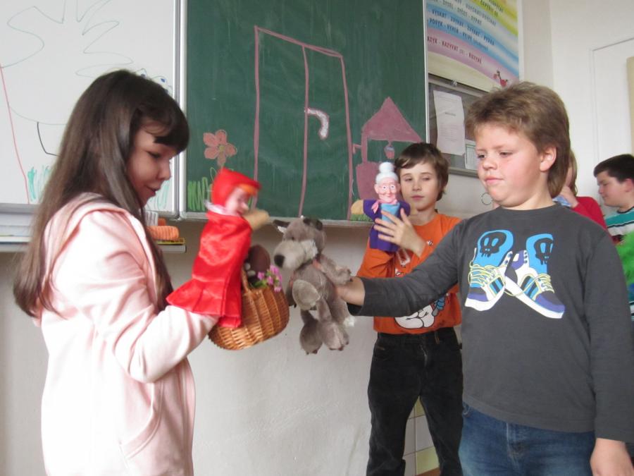 Druhou vyučovací hodinu si jednotlivé třídy navzájem zahrály připravené divadlo, tedy veršovanou báseň dramaticky zpracovanou. Nechyběly kostýmy, vyrobené masky, rekvizity, kulisy i loutky.