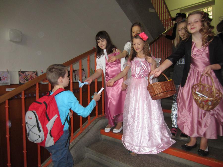 První vyučovací hodinu proběhla ve třídách beseda o poezii, básnících, o knihách poezie, které si žáci do školy přinesli, recitovali oblíbené básně, tvořili rýmy a o přestávce své knihy vystavili na chodbě školy.