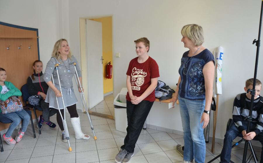 Nakonec bylo potřeba určit někoho, kdo bude skákat pro plyšového Bludišťáka. Důvěru dostal Jáchym Kosík, žák šestého ročníku. Při prvním pokusu mu plyšový maskot vyklouzl z ruky, ale druhým pokusem byl náš.