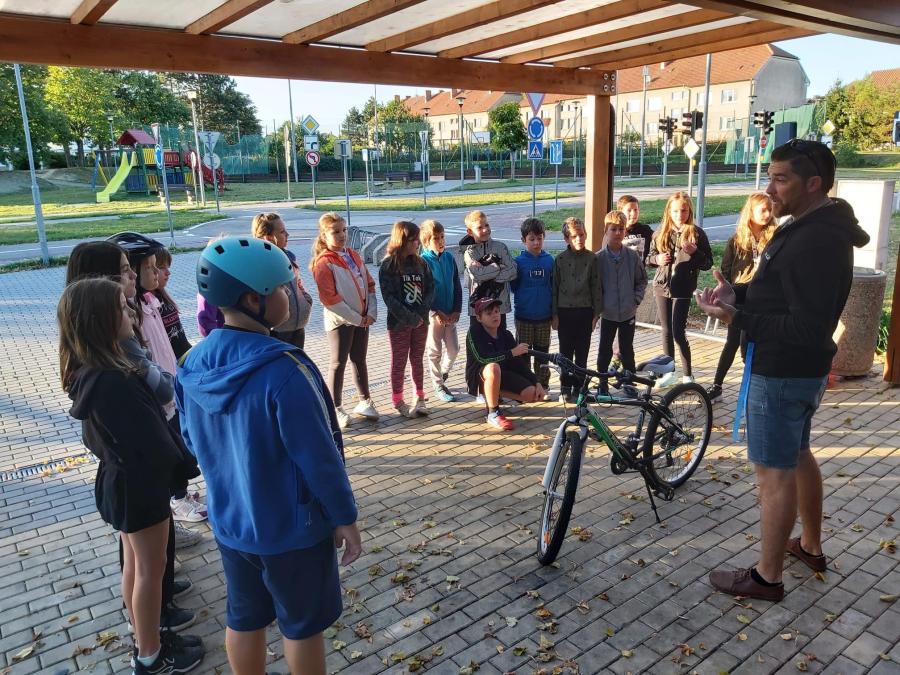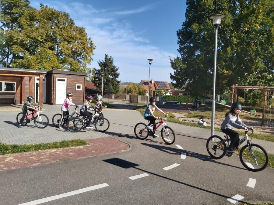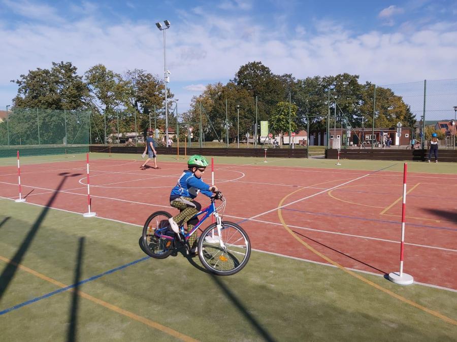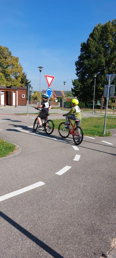 Dne 3.10. a 4.10. se žáci čtvrtého ročníku vypravili na dopravní hřiště v Hustopečích. V teoretické části si zopakovali vybavení jízdního kola, dopravní značky a křižovatky. Během praktické části si vyzkoušeli jízdu zručnosti s překážkami. Nejvíce se děti těšily na praktické jízdy se zapnutými semafory. Nebylo to jednoduché, protože při jízdách bylo třeba respektovat dopravní značky. Děti se snažily, byly šikovné. Celé dopoledne si všichni užili.
