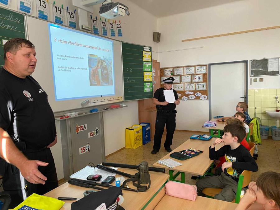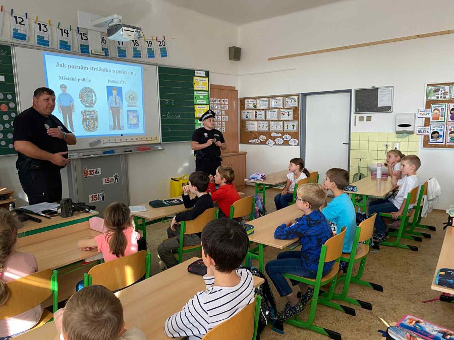 Proto v úterý 14. října proběhla na naší škole beseda s městskými strážníky panem Stanislavem Prachařem a Ivou Rathouskou.