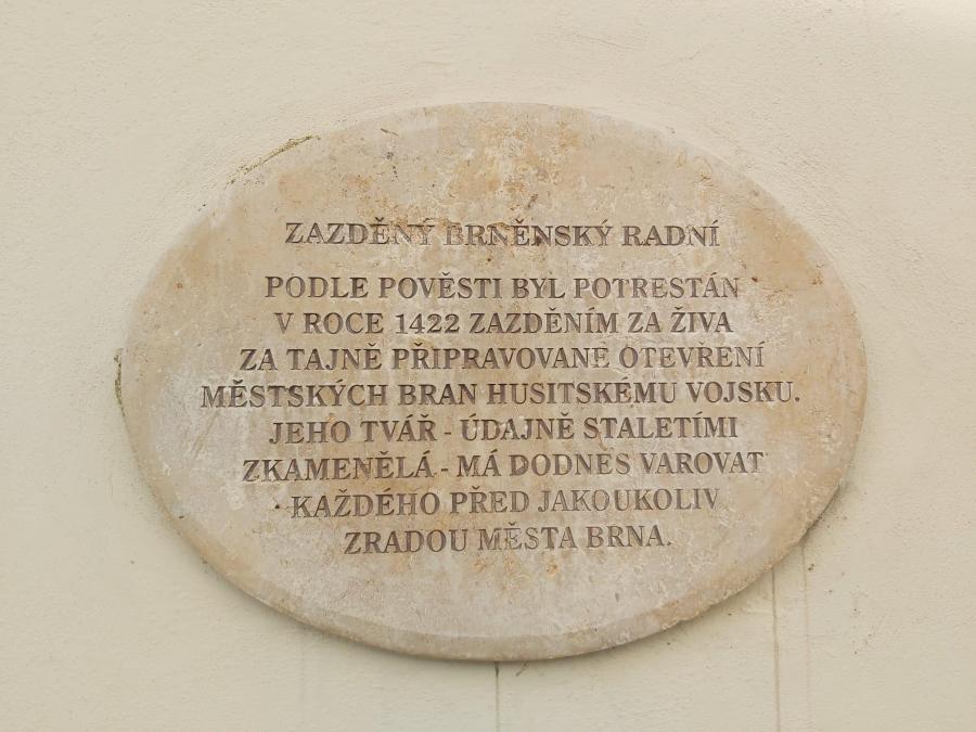 Nejlepší pověst byla o zazděném radním. Byla husitská válka, při které husité dobývali Brno. Jenže se jim to nedařilo, a tak podplatili jednoho radního, aby jim otevřel bránu města. Ale dozvěděli se to ostatní radní a nechali ho za zradu zazdít. (Jan Sadílek)