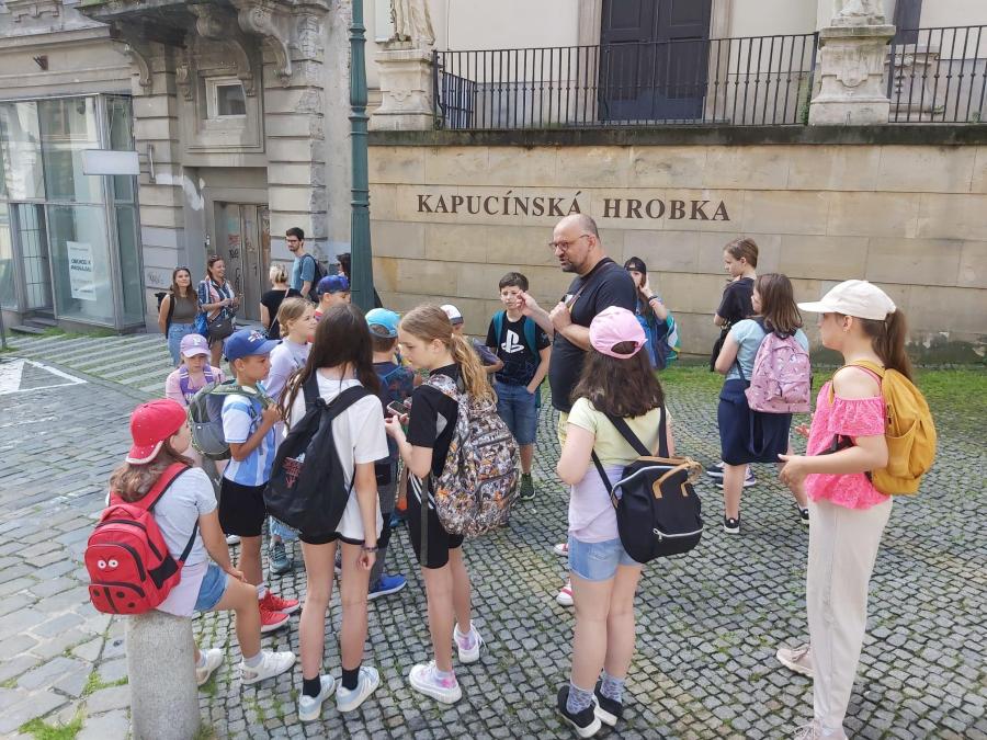 Bylo zajímavé jet do Brna vlakem po tak dlouhé době. Byli jsme také u Kapucínské hrobky. Jsou tam položení kapucíni a mají pod hlavami vždy dvě cihly. (Klára Popelková)