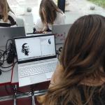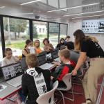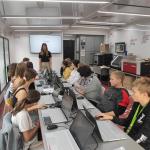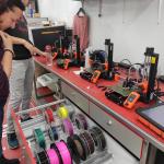 V další části workshopu teorii vystřídala praxe. Žáci 6. a 7. ročníků pomocí řezacího plotteru vyráběli nálepky nebo vzory na potisk svých triček, které pomocí termolisu na ně „natiskli“. Žáci 8. a 9. ročníků měli možnost si vyzkoušet práci na 3D tiskárně, pomocí které si vyrobili klíčenky s vlastními náměty.