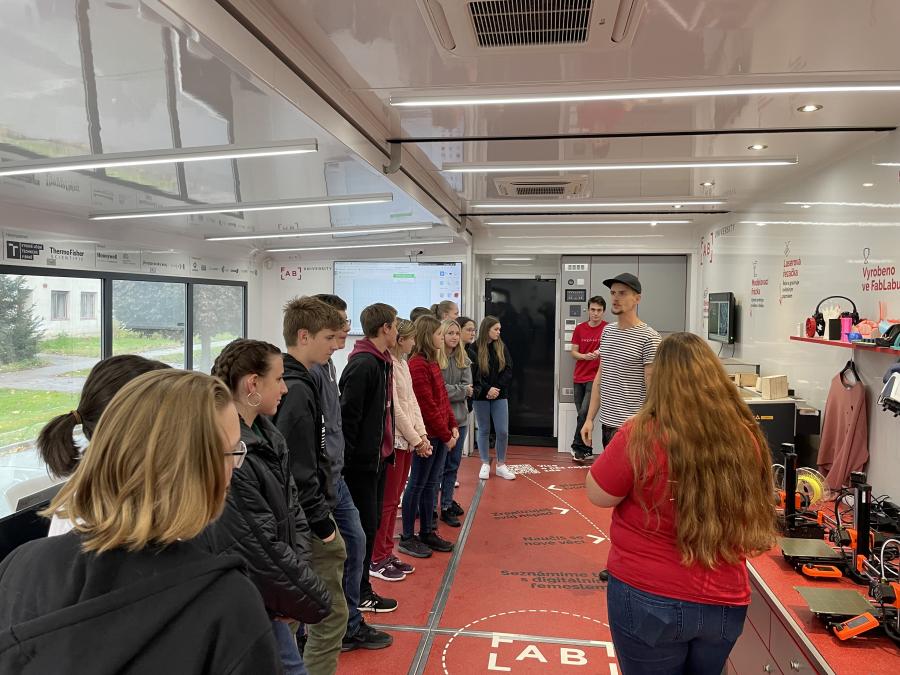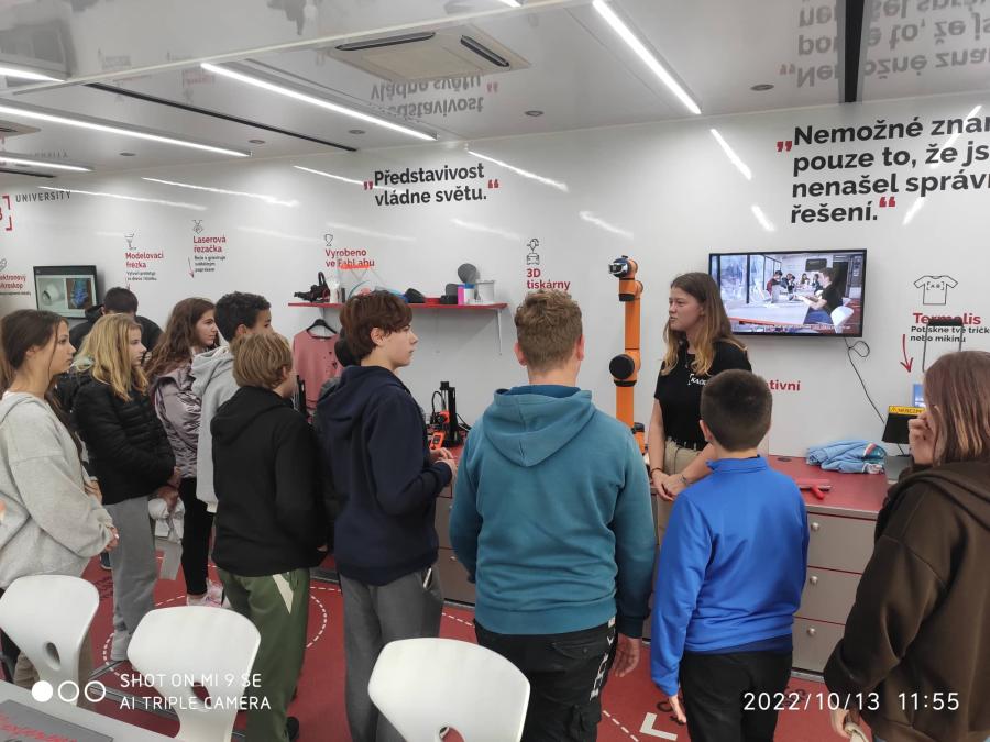Ve dnech 12. – 14. října se žáci druhého stupně zúčastnili akce „FabLab University“. Jednalo se o speciálně upravený návěs, který se po zaparkování dokáže proměnit v dílnu plnou moderních výrobních strojů. Díky této možnosti se žáci dozvěděli mnoho zajímavých informací, jak tyto stroje fungují.