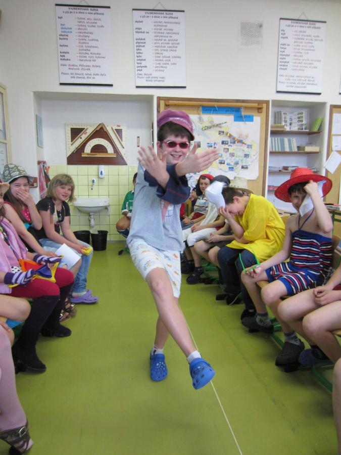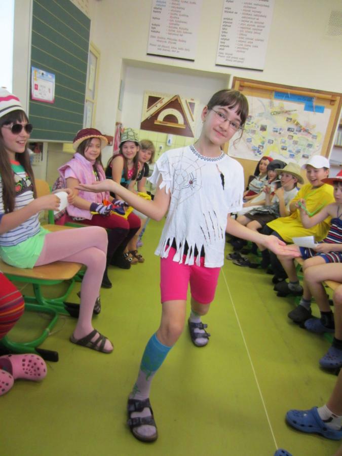 V pátek 19. 4. jsme v hodině angličtiny uspořádali módní přehlídku neboli Fashion show. O přestávce jsme se podívali na naše kostýmy a oblékli si je. Hodina angličtiny s módní přehlídkou mohla začít. Utvořili jsme skupinky a každého člena jsme anglicky popsali. Potom se pustila hudba a začala „předváděčka“. Každý model se prošel po vytvořeném módním poli a někdo ze skupinky anglicky četl, co má na sobě. Moc se nám to líbilo, hlavně proto, že všechny modely byly velmi vtipné.