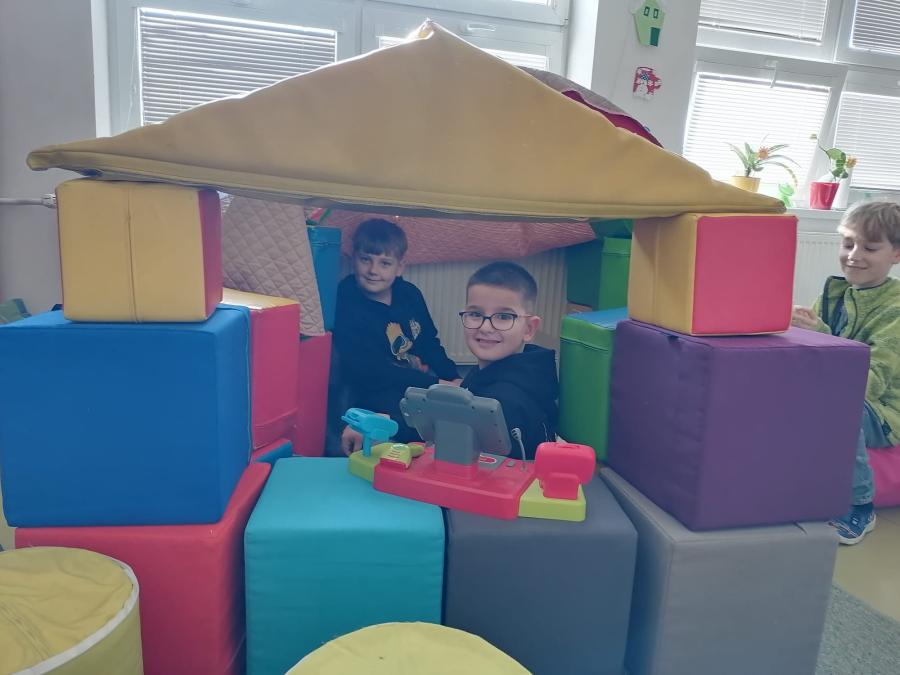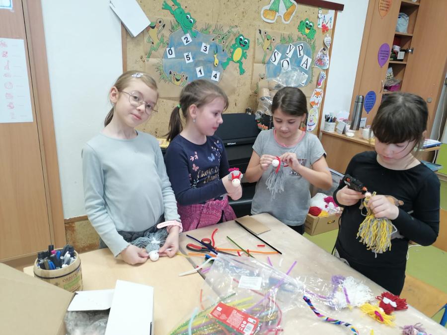 Po vánočním tvoření se děti ze školní družiny vrátily k běžným činnostem. Každý si našel svou hračku, omalovánku, autodráhu, lego a mnoho dalších aktivit. Největší úspěch mají molitanové kostky, ze kterých vznikají obchody, domečky, bunkry nebo čtenářský a odpočinkový koutek. Můžete si zajít ke kadeřnici, nakoupit v obchodě, na kávičku do kavárny a na závěr si zacvičit. Děti se v družině rozhodně nenudí a každý si svoji zábavu najde.