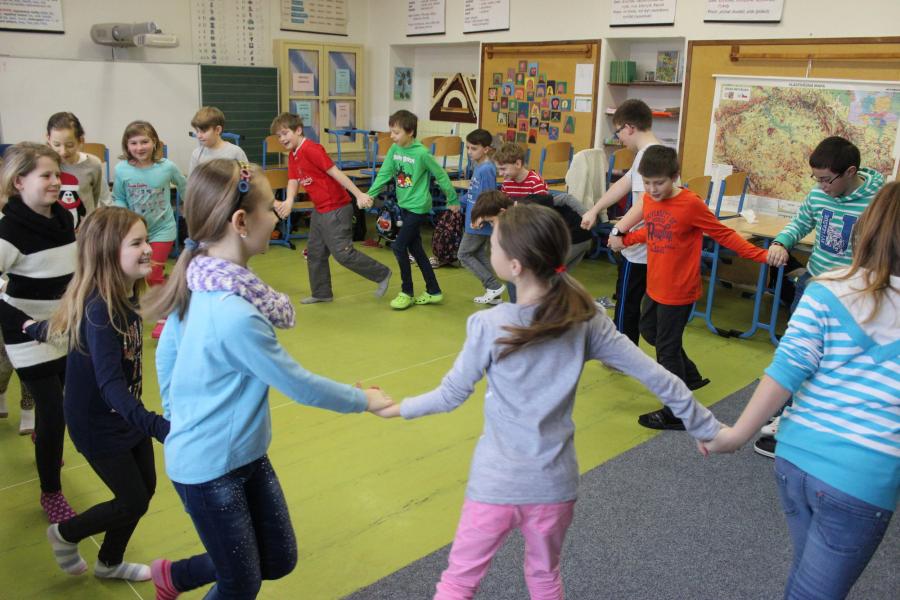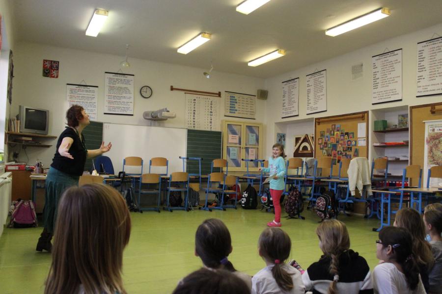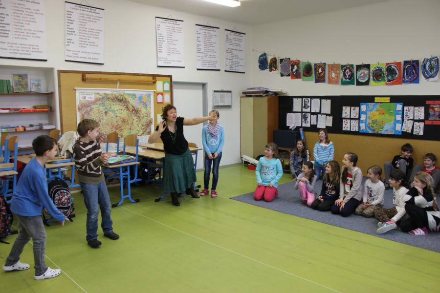 Ve středu 14. 1. 2015 přijela do čtvrtých tříd za dětmi Zuzana Skálová, v současné době vyučující na Konzervatoři Brno obor Dějiny divadla a teorie dramatu, s interaktivním programem Život Keltů. Žáci tak dramatickou formou získali mnoho informací o Keltech, o jejich životě, vynálezech, odívání a tanci. Interaktivní divadlo vychází z myšlenek J. A. Komenského, kdy dítě má uchopit výuku a vnímání všemi smysly. Cílem takové dramatické vyučovací hodiny je úcta k předkům, nový pohled na minulost, prolínání moudrosti z minulých dob a kladení důrazu na kladné postoje člověka ve společnosti. Děti byly naprosto ponořené do děje, nadšeně a přirozeně reagovaly a zapojovaly se do zadaných činností. Z fotografií jde vidět jejich nadšení i to, jak moc je to bavilo.