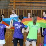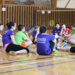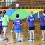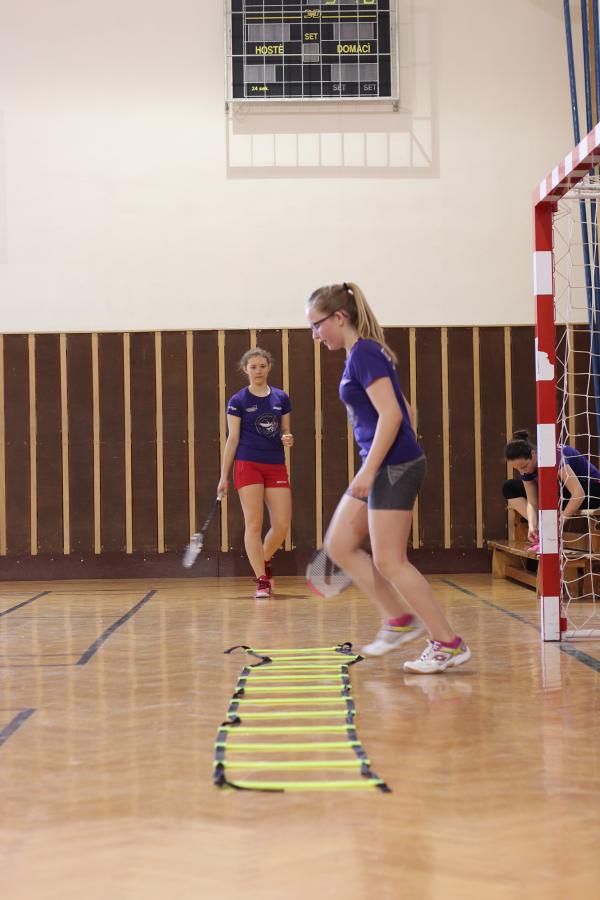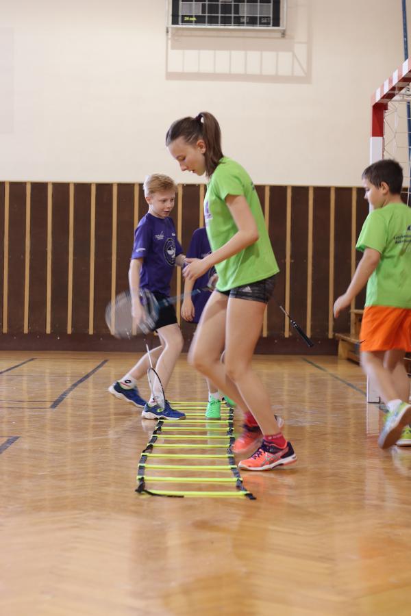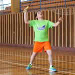 Odpolední blok byl zaměřen na čtyřhru. Ta hráče možná bavila ještě víc a sehrávali se vcelku zdatně. V průběhu dne byly ještě několikrát zařazeny prvky podněcující hráče ke spolupráci. Úplný závěr badmintonového tréninku skončil náročnými přeběhy na šířku tělocvičny. Pak už měla přijít jenom zábava v podobě volné hry, střílení na bránu fotbalovým míčem, basketbalová střelba na koš, házení si s frisbee a řada dalších her. Tréninkový den jsme zakončili shrnutím a strečinkem.