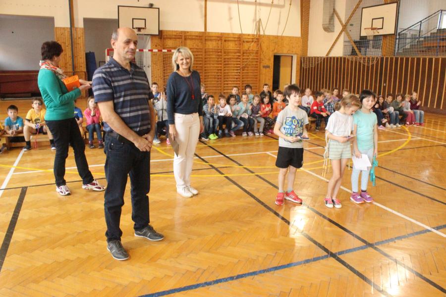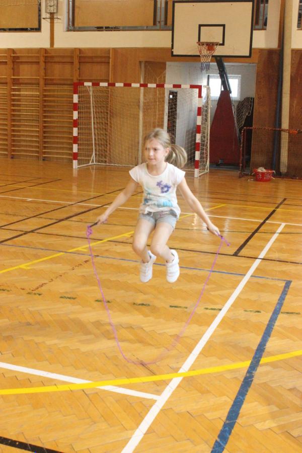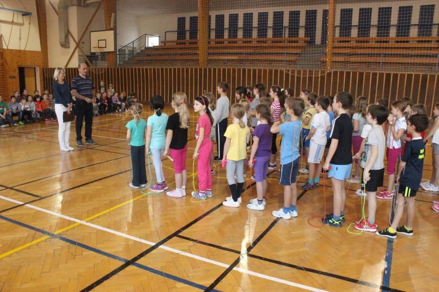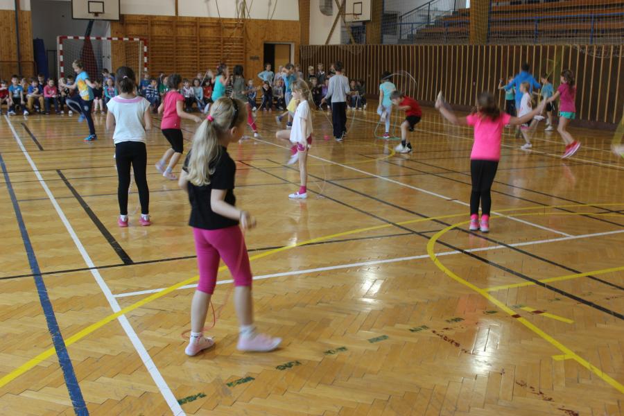 Sportovní soutěž zahájil pan ředitel Mgr. Michal Rilák a popřál všem finalistům co nejvíce přeskoků za půl minuty. Děti předvedly skvělé výkony.