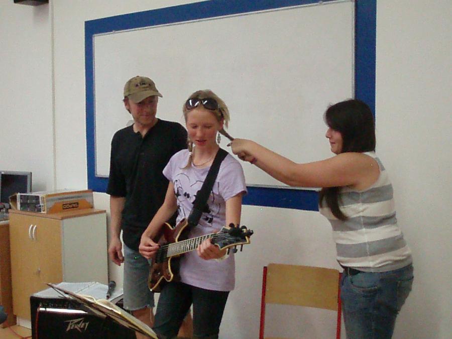Pravda, holky mi řeknou, že chtějí hrát tu a tu písničku, třeba od Tomáše Kluse, já ji doma složitě „oakorduju“ a pak mi v kroužku řeknou: „Ale to je moc těžký!“ Nicméně nezbývá jim nic jiného než nekecat, zatnout zuby a hrát. A jak jim to pak jde J