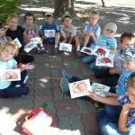 Anglická družinka nezůstala pozadu a ve stínu košaté lípy si vytvořila vlastní stanoviště. Zde si děti zopakovaly anglicky všechny barvičky a čísla. Podle obrázků pojmenovávaly různá zvířátka