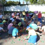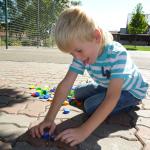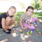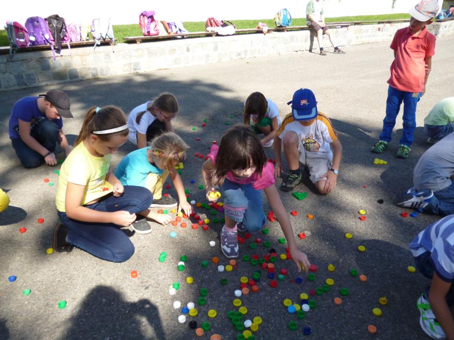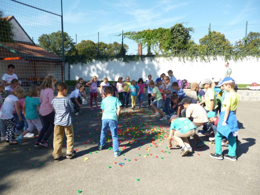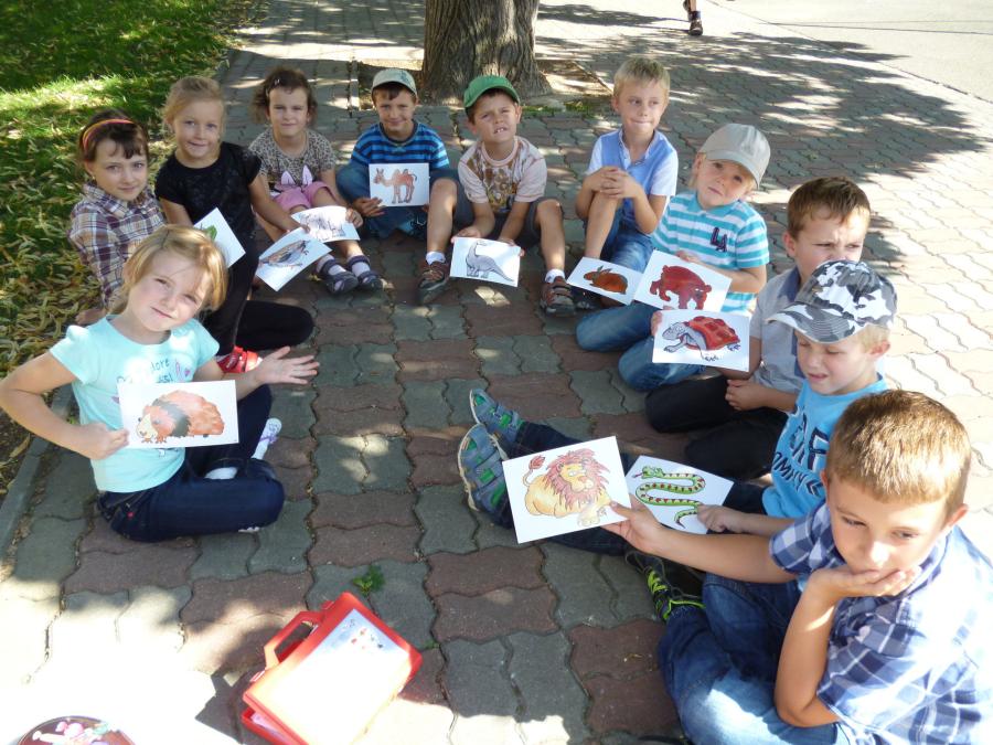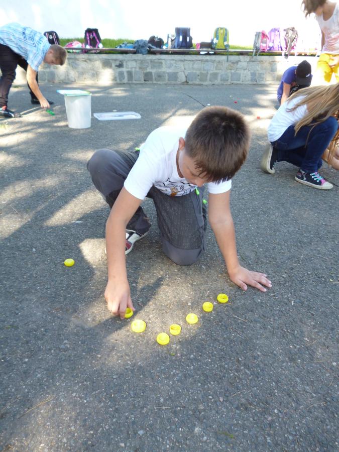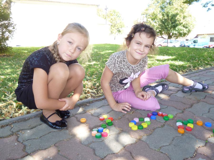 Krásný a stále ještě letní čtvrteční den nás vylákal s našimi družinkovými dětmi ven za sluníčkem. Na hřišti za „kostelem si děti s paní vychovatelkou zahrály několik veselých her. Z víček od pet lahví skládaly obrázky, podle dětské knížky se během krátké chvilky musely ve skupinkách naučit krátkou básničku a společně ji s přednesem odříkat paní vychovatelce.