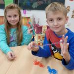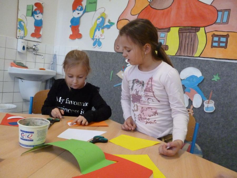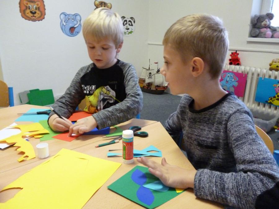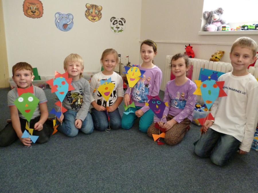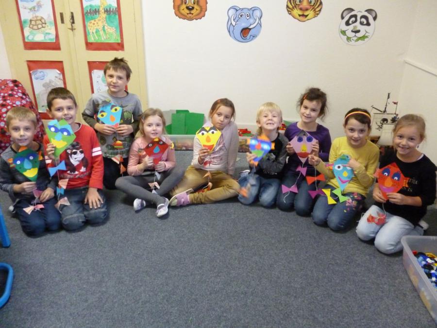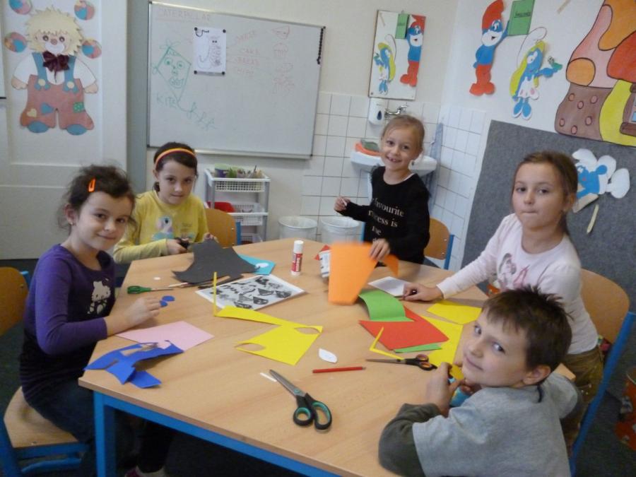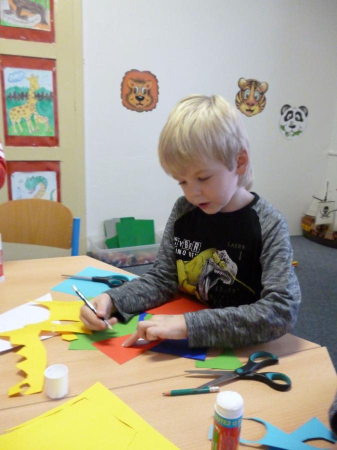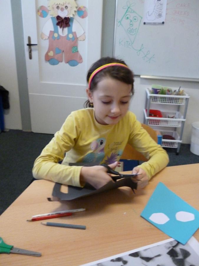 Děti v anglické družince se také pustily do „dračího“ vyrábění. Při něm se naučily nová slovíčka. Již nyní dovedou popsat jednotlivé části obličeje ve spojení s barvičkami a tvary.
