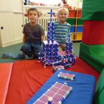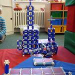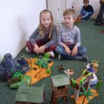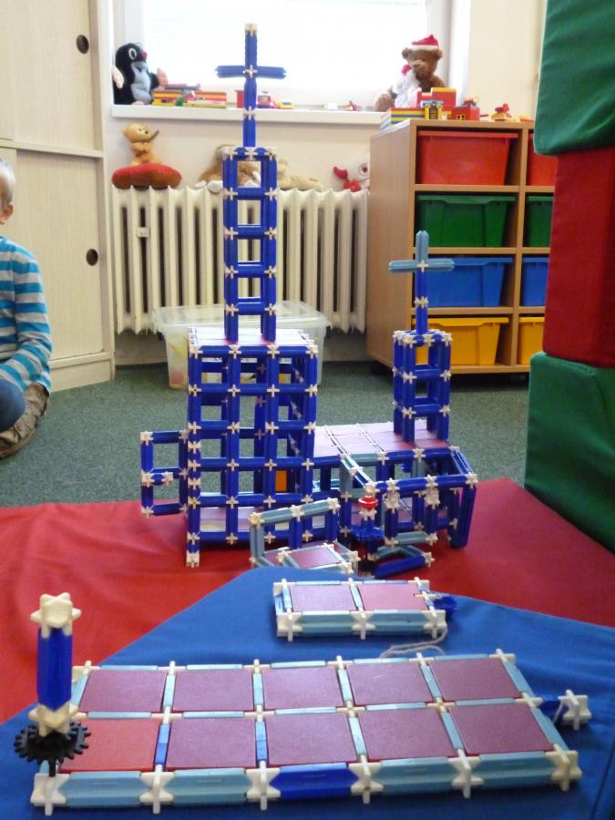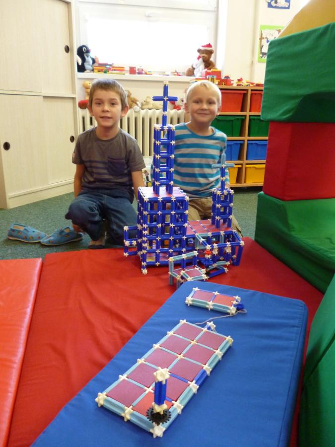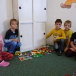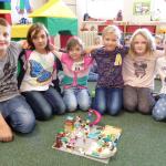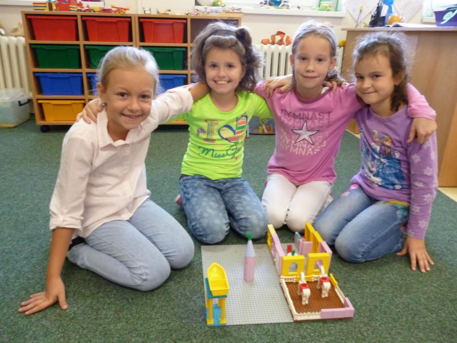 se děti vrhly na sestavování hřišťátek. Fantazie se rozběhla na plné obrátky a brzy vznikla velmi pěkná nápaditá dílka. Ta si pak jednotlivé skupinky samy okomentovaly a popsaly jejich účelnost a využití. Na závěr děti samy vyhlásily vítěznou stavbu a tu ocenily velkým potleskem. Nejvíce ohlasů získalo hřišťátko sestavené z lega friends.
