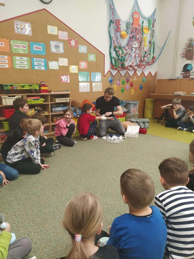 V pátek a v pondělí se žáci prvních, druhých a třetích ročníků naší školy zúčastnili velmi zajímavé besedy s hasičem, který je provedl světem základů první pomoci. Pan hasič dětem vysvětlil základní pojmy spojené se záchranou života, seznámil je s důležitými telefonními čísly a s postupy první pomoci.