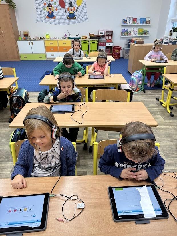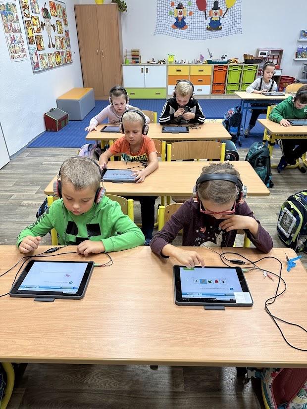 Tuto diagnostiku jsme provedli v 1. třídách, kdy každé dítě mělo svůj tablet a sluchátka. Práce žáky velmi bavila, všichni zvládli všechny úkoly, ale s některými typy úkolů měly děti i problémy.