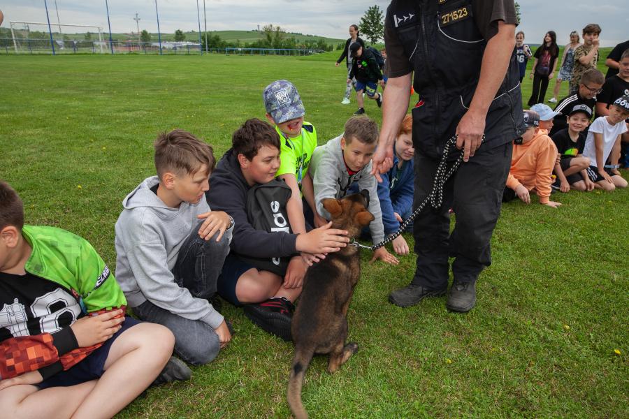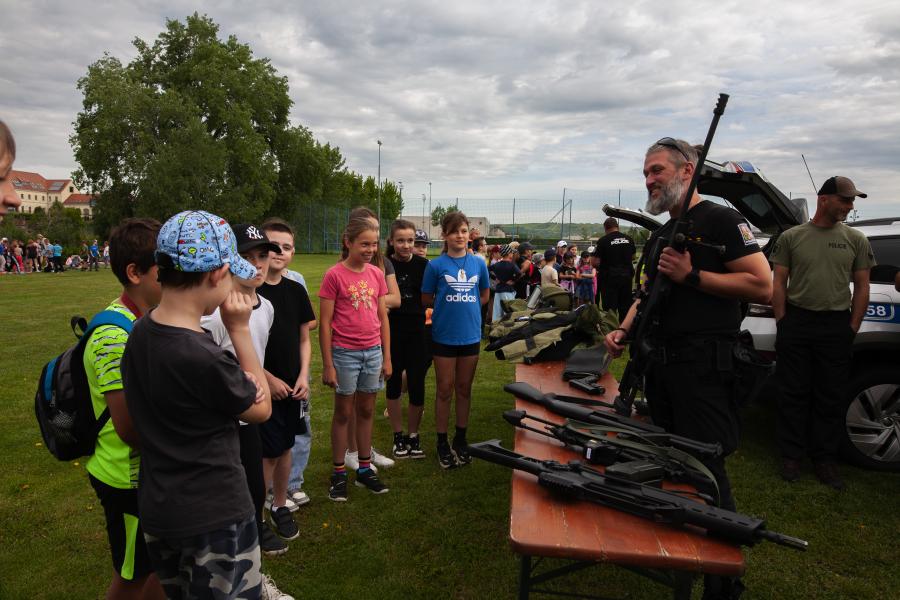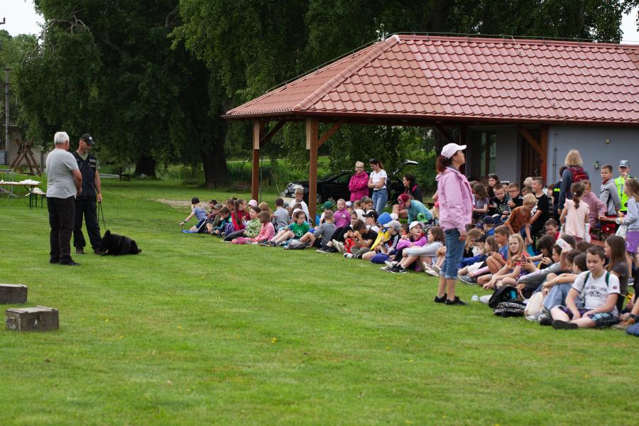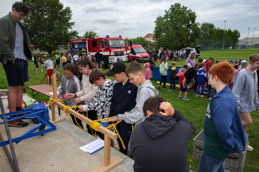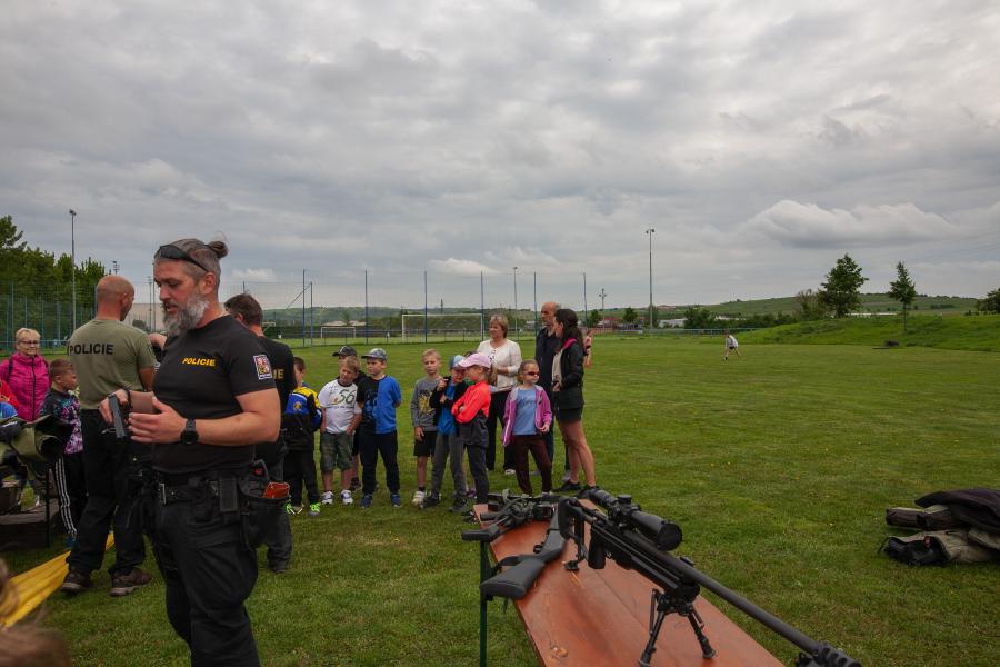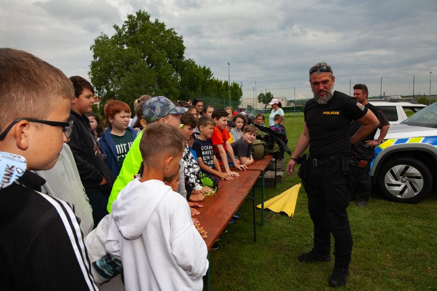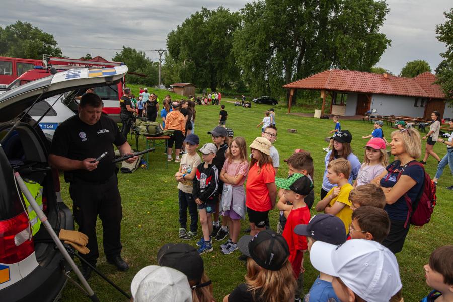 Den dětí se v letošním roce nesl ve znamení integrovaného záchranného systému. Na louce za rybníkem na děti čekali SDH, Policie ČR, Městská policie a zdravověda. Žáci si všechna stanoviště prošli, seznámili se s prací a technikou jednotlivých složek. Vyzkoušeli si i první pomoc a ošetření zraněného. Policisté si pro ně navíc připravili ukázky práce psovoda, psí poslušnost a vyhledávání pyrotechniky a drog. Velký úspěch měla scénka se zadržením podezřelého a největším překvapením pro děti bylo štěně německého ovčáka. Pozdravilo se se všemi a mazlení nebralo konce.