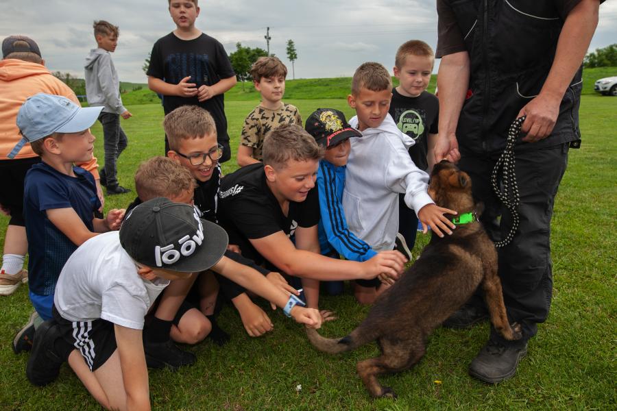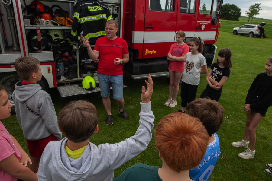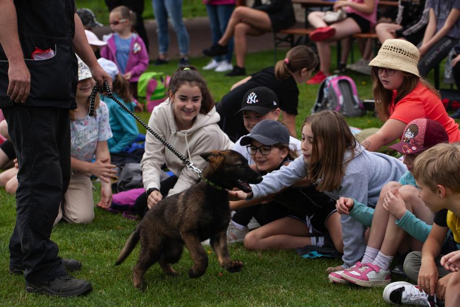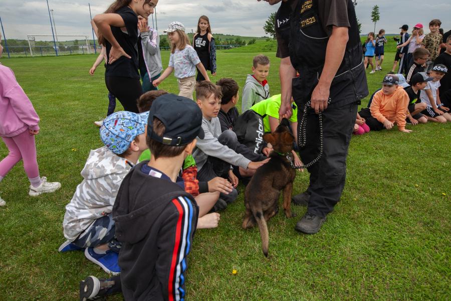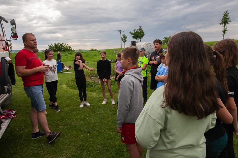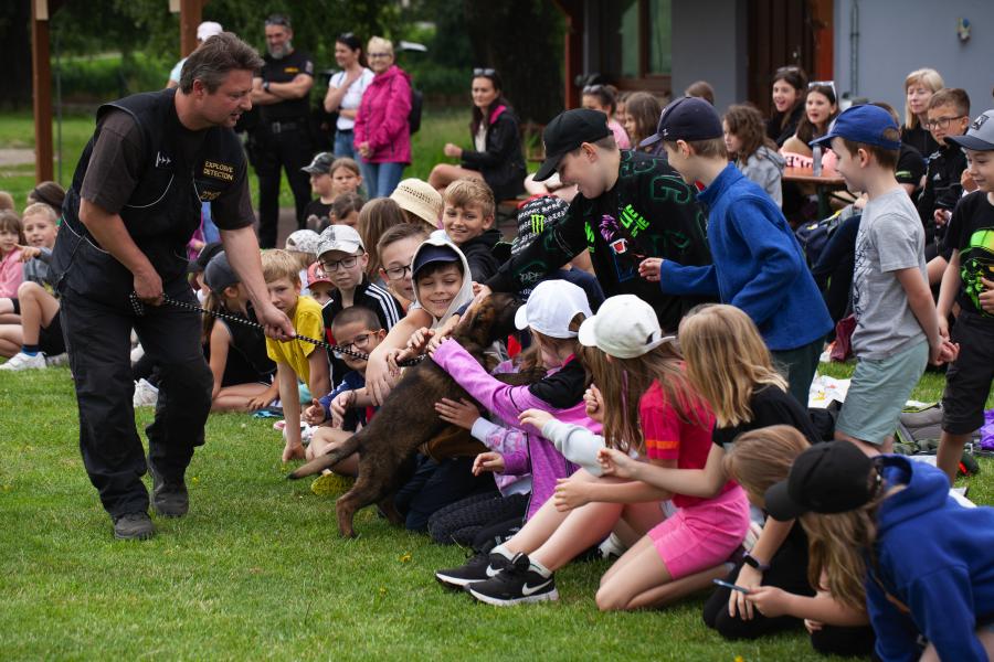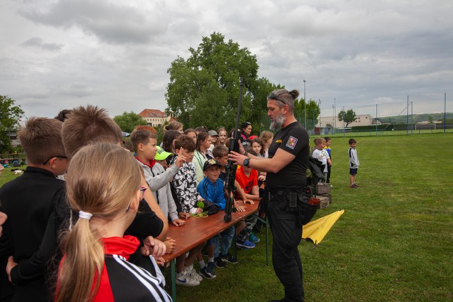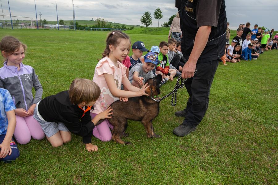 Den dětí se v letošním roce nesl ve znamení integrovaného záchranného systému. Na louce za rybníkem na děti čekali SDH, Policie ČR, Městská policie a zdravověda. Žáci si všechna stanoviště prošli, seznámili se s prací a technikou jednotlivých složek. Vyzkoušeli si i první pomoc a ošetření zraněného. Policisté si pro ně navíc připravili ukázky práce psovoda, psí poslušnost a vyhledávání pyrotechniky a drog. Velký úspěch měla scénka se zadržením podezřelého a největším překvapením pro děti bylo štěně německého ovčáka. Pozdravilo se se všemi a mazlení nebralo konce.