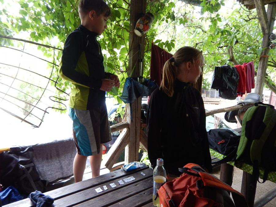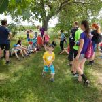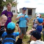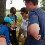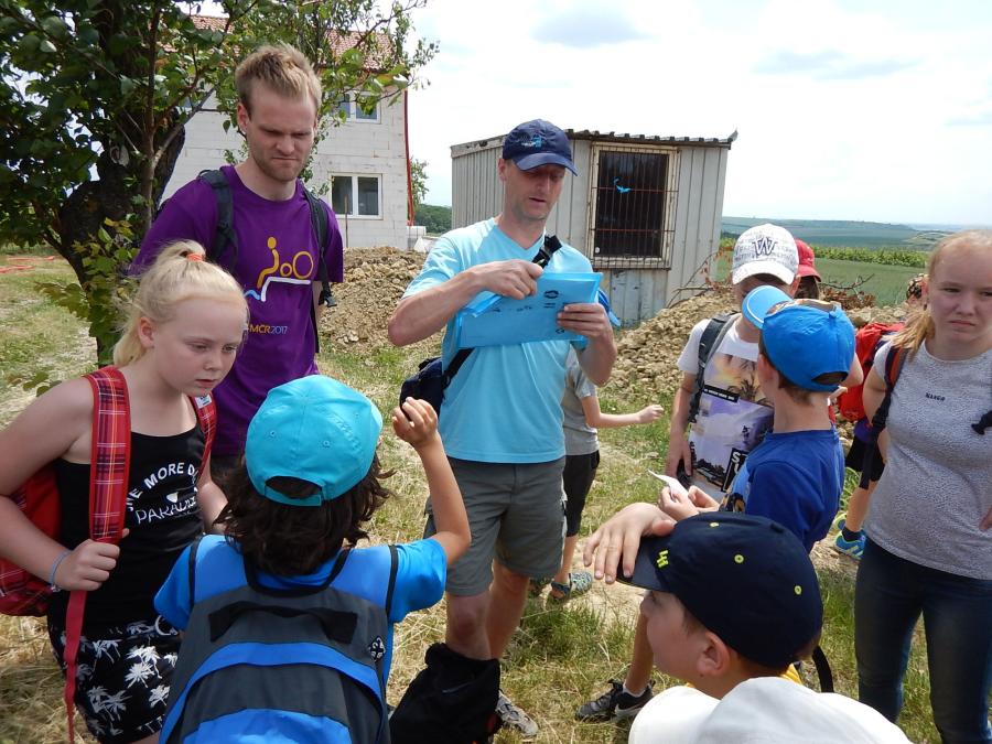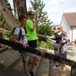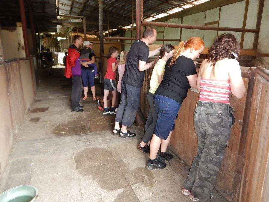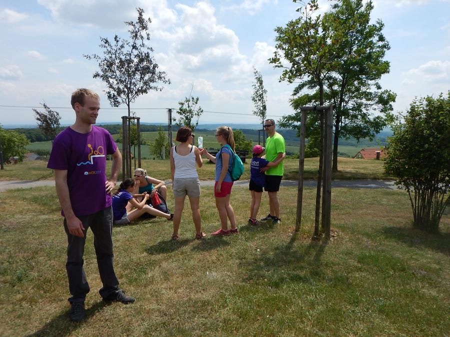 Přes vysoko položenou moravskou vesnici a její okouzlující lokalitu Stráž, pod níž jsme neopomenuli malé občerstvení formou velké zmrzliny, jsme se vydali mírně vlnitou krajinou ke kopci Hradišťku, pod nímž se nachází ranč SEN, cíl naší výpravy. Všichni účastníci byli na začátku výpravy rozděleni do družstev, která cestou hledala ukryté zprávy a řešila postupně úkoly, vědomostní otázky a šifry z těchto zpráv. Tak všichni sbírali indicie, ze kterých závěrem mohli vytvořit „větu dne“. Tedy vše do chvíle, kdy nám příroda přichystala jiné dobrodružství. Bouře, která se spustila, nás promáčela doslova na kost, ale i tak vytvořila, především pro děti, nezapomenutelný zážitek. Rychlým přesunem, hnáni větrem a deštěm, jsme se nakonec dostali na ranč, kde jsme obeschli částečně na sluníčku, které po bouřce opět vyšlo, částečně u ohně. Dokončili jsme soutěžní hru, prohlédli si stáje, zkusili si péči o koně, svezli se na nich a při ohni mezi tím opékali špekáčky. A věta dne? „Kdo sedí doma, nic neprožije.“