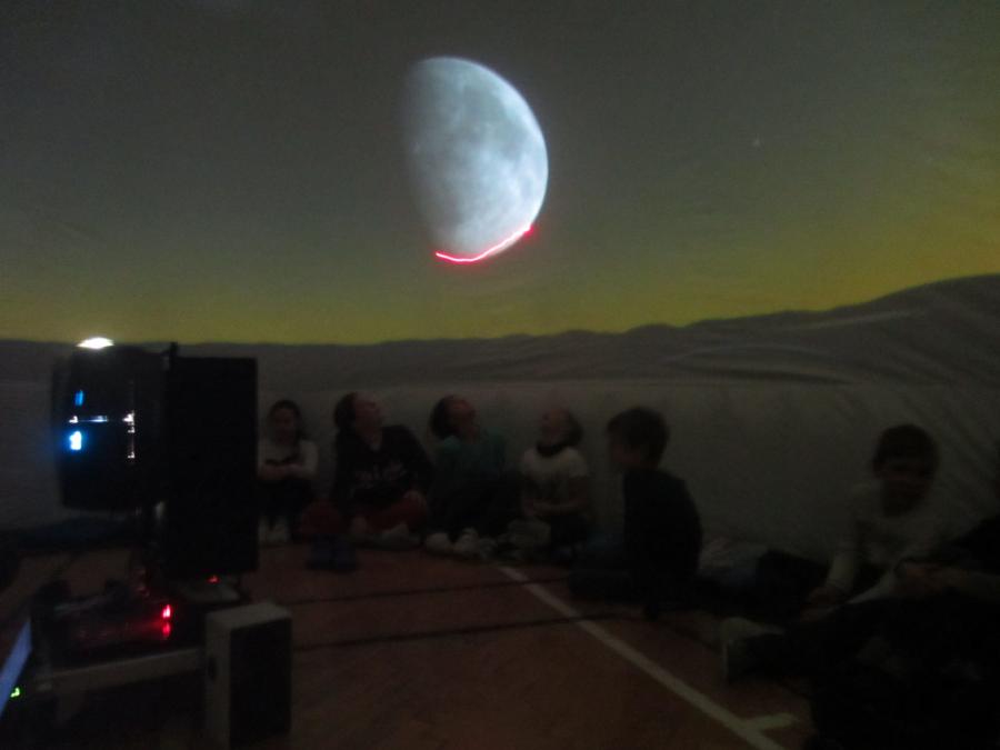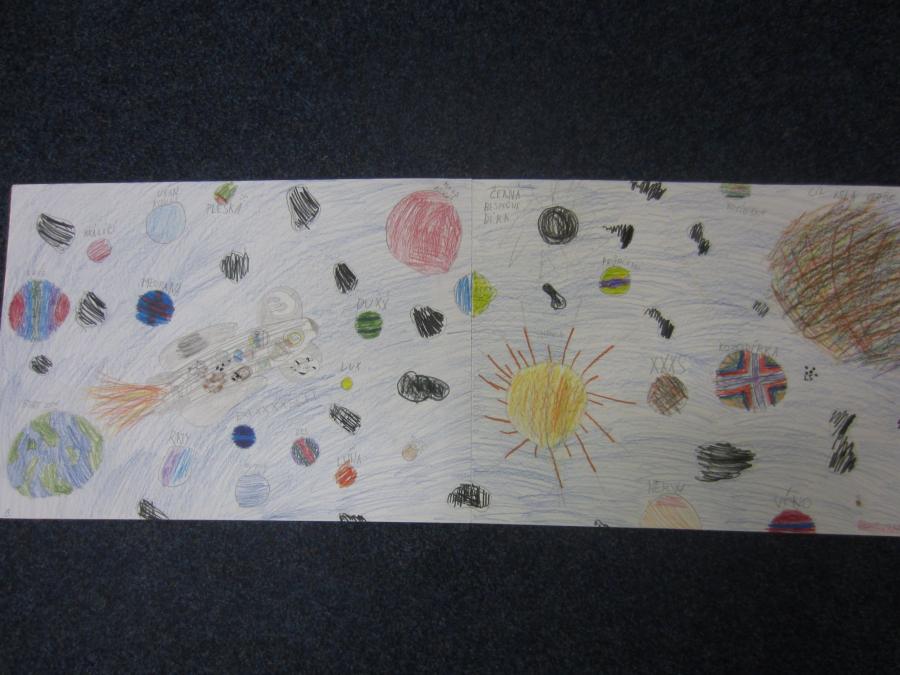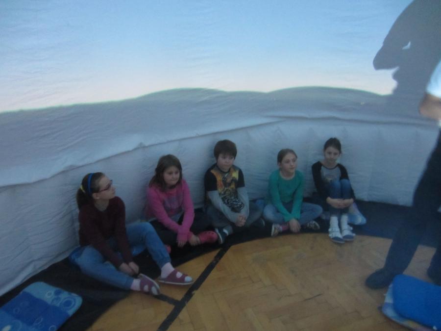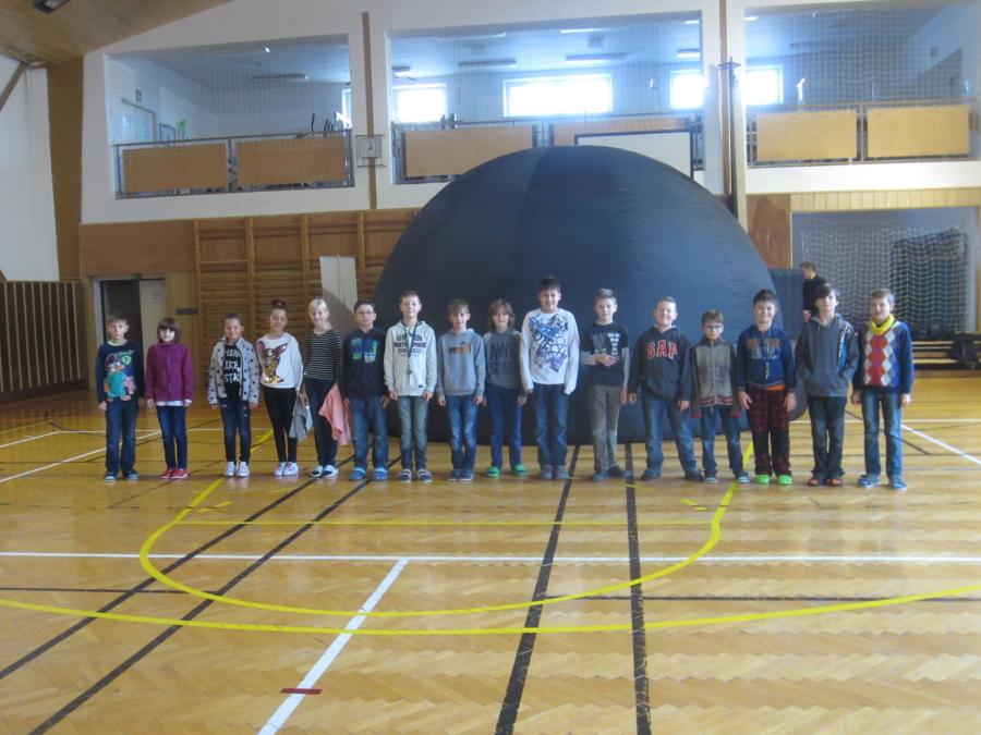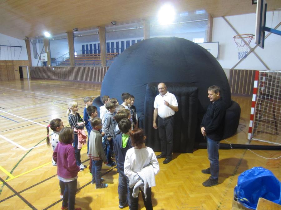 Na tyto otázky dostali odpověď žáci 1. stupně ve středu 9.11., kdy naši základní školu navštívilo mobilní planetárium. Tento program probíhal v nafukovací kupoli, kde se děti díky dvěma trpaslíkům seznámily s prostorem vesmíru. Zvídavé postavičky, Zvídálek s Vševědem, podnikly také let kouzelným raketoplánem a ukázaly, jak náročná je práce astronauta.