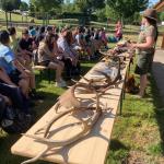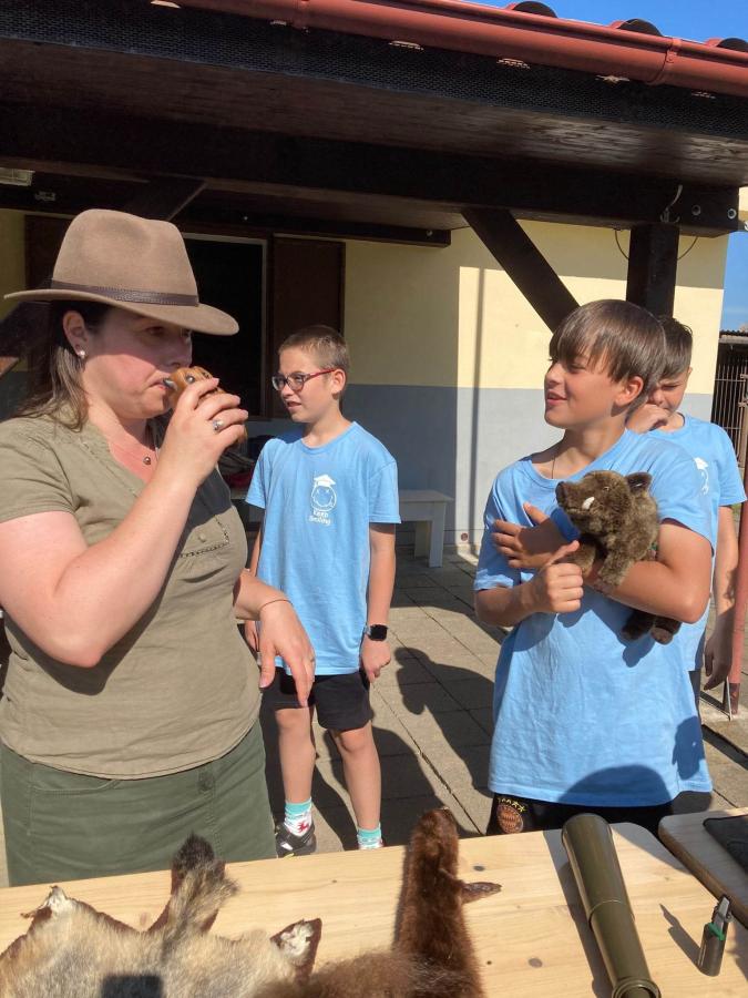 V aerálu Kynologického klubu Velké Pavlovice předvedla dětem ukázku zvířecích kůží, parohů, rohů, vábniček a mnoho dalšího. Poutavě dětem vyprávěla o přírodě, její ochraně, biologii zvířat, práci myslivců, o sokolnictví a střelectví. Děti si mohly vystavené exponáty nejen prohlédnout, ale také osahat a vyzkoušet. U děvčat sklidily obdiv kožešiny lišky, veverek, norka a chlapci zase ocenili možnost zkusit si držet mysliveckou flintu či pozorovat okolí velkým dalekohledem. Největší úspěch však sklidil živý exponát – jezevčice Amy, jež byla na volném prostranství očividně spokojená.