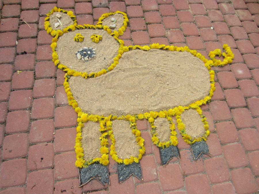 Vytvářeli jsme zvířátka z větviček, lístků, kamenů, kytek a jiných přírodních předmětů. Bylo to super! K vidění bylo: kuřátko z pampelišek, pláž z kamínků a písku, vážka, divoké prase ze štěrku a písku a další krásné výtvory. Moc se nám to líbilo.