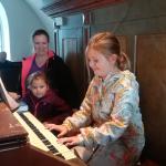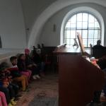 Poté jsme po dřevěných schodech vystoupali na kostelní kůr, kde nás již čekala varhanice, paní Jana Julinková a „její“ obrovské a krásné varhany. Seznámila děti s tímto majestátním hudebním nástrojem, vysvětlila jim princip, jak se na varhany hraje a zahrála několik zvučných melodií, které nás ohromily. Pomalu se nám blíží vánoční svátky, a tak jsme si zazpívali s doprovodem varhan několik známých koled. Nakonec si každé z dětí mohlo zkusit za varhany usednout a „zahrát“na ně. Některým se podařilo vyloudit zajímavé tónové variace.