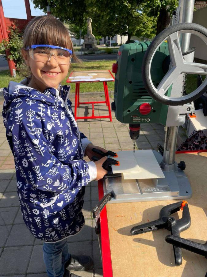 Pod vedením zkušených lektorů se malí řemeslníci pustili do výroby vlastních deníčků z překližky. S velkým zaujetím si nejprve nařezali dřevěné desky, poté je obrousili a sestavili do podoby krásného zápisníku, který si každý mohl ozdobit podle svého vkusu.